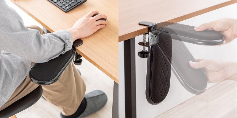 サンワサプライ株式会社(本社:岡山市北区田町1-10-1、 代表取締役社長 山田 和範)が運営している直販サイト『サンワダイレクト』では、工具不要で簡単に設置でき、左右180°スイングと90°折りたたみ収納に対応した、長時間のデスクワークでも腕や肩の疲れを軽減し、快適な作業環境をサポートするクランプ式アームレスト「200-TOK026BK」を発売しました。