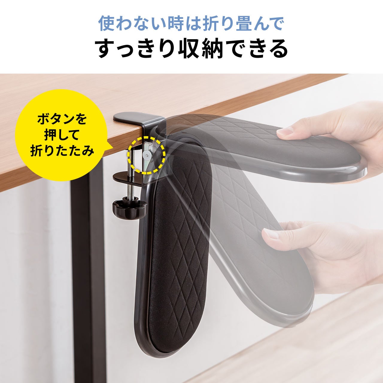 肘置き クランプ 折りたたみ アームレスト ひじ掛け 疲労軽減 180°回転 リストレスト 90°折り畳み 後付 デスクワーク