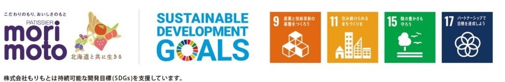 持続可能な開発目標(SDGs)において、北海道産素材(小麦、小豆等)を積極的に活用して地産地消に取り組むため11項目「住み続けられるまちづくりを」に合致し、生産者様とのパートナーシップを継続して続けていることで、 17項目「パートナーシップで目標を達成しよう」に合致することなどから「サステナブルスイーツ(R)」*として位置づけ展開しております。*持続可能なスイーツのこと。もりもとでは、その地域ならではの素材を生産者様と一緒に守り、スイーツにすることで付加価値を高め素材の需要拡大に取り組み「持続可能な地域社会」の実現を目指しています。