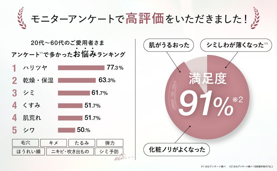 ▼ 発売前の愛用者さまモニターアンケートでは90%超えの満足度を獲得するなど、大きな反響