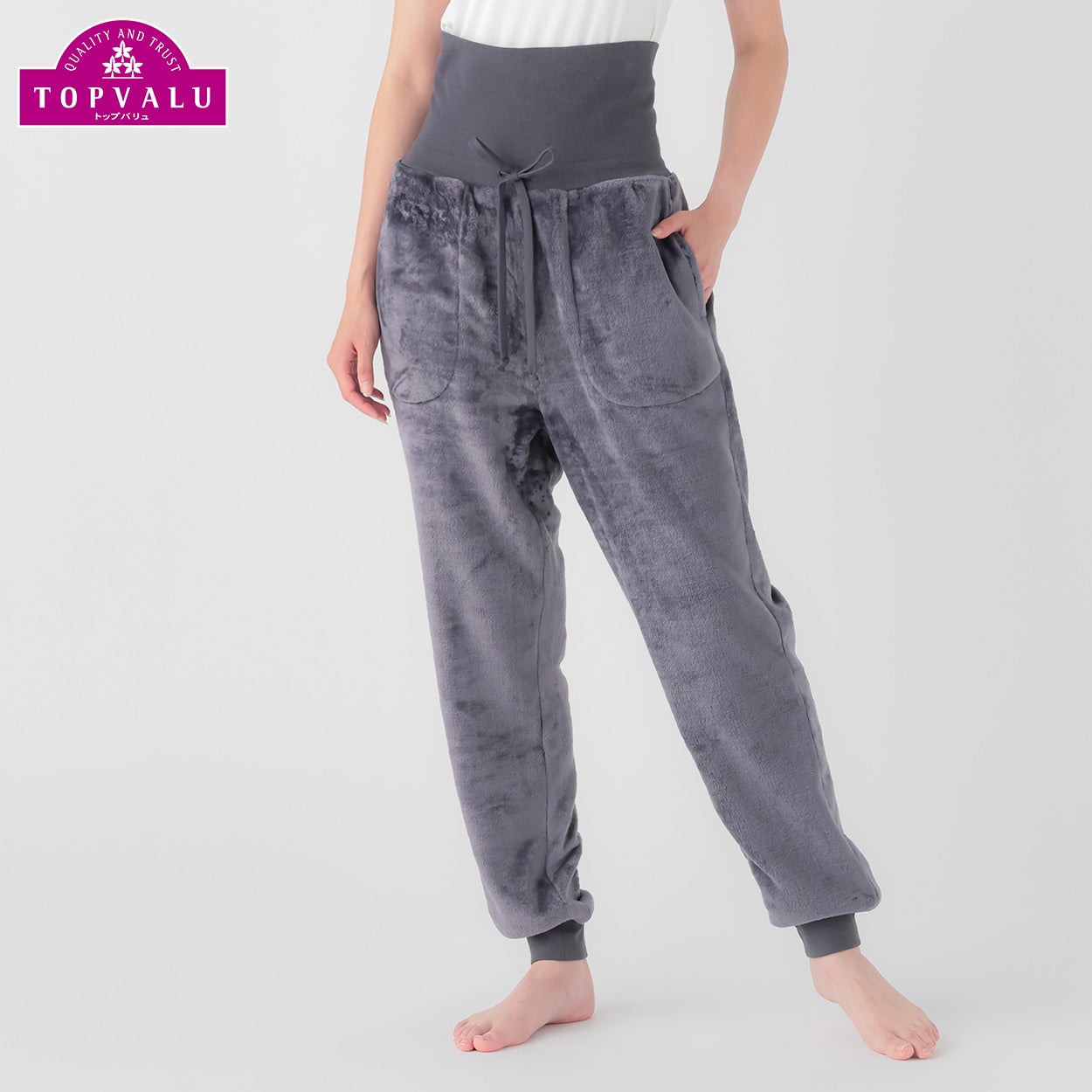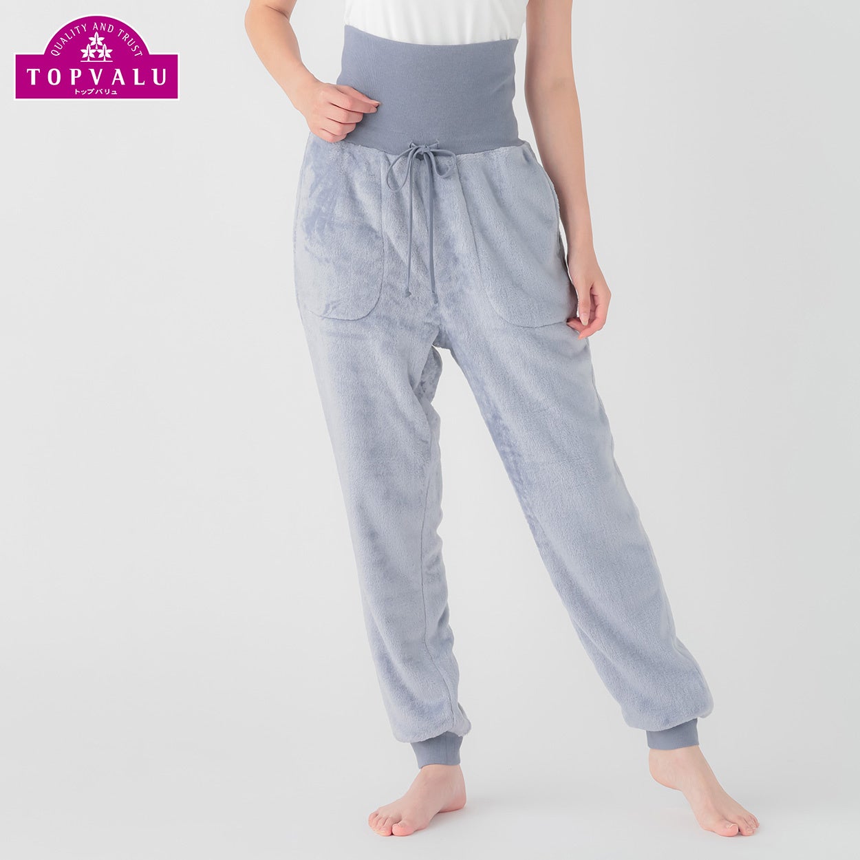腹巻部分にジンジャーパウダー練り込み糸を使用し、“保温”と“吸湿発熱”機能が付いているため、おなかを冷えから守り、リラックスタイムをあたたかく過ごせます。リブ編み生地のため、おなかを締め付けにくく、やさしくフィットします。ベロアフリース生地には繊維中の潤いを保つ“保湿加工”と、乾燥する季節にぴったりな“静電気軽減”機能が付いています。また、「ゆる~むふわふわ着る毛布」と上下セットで着れば、おうちでよりあたたかく過ごせます。