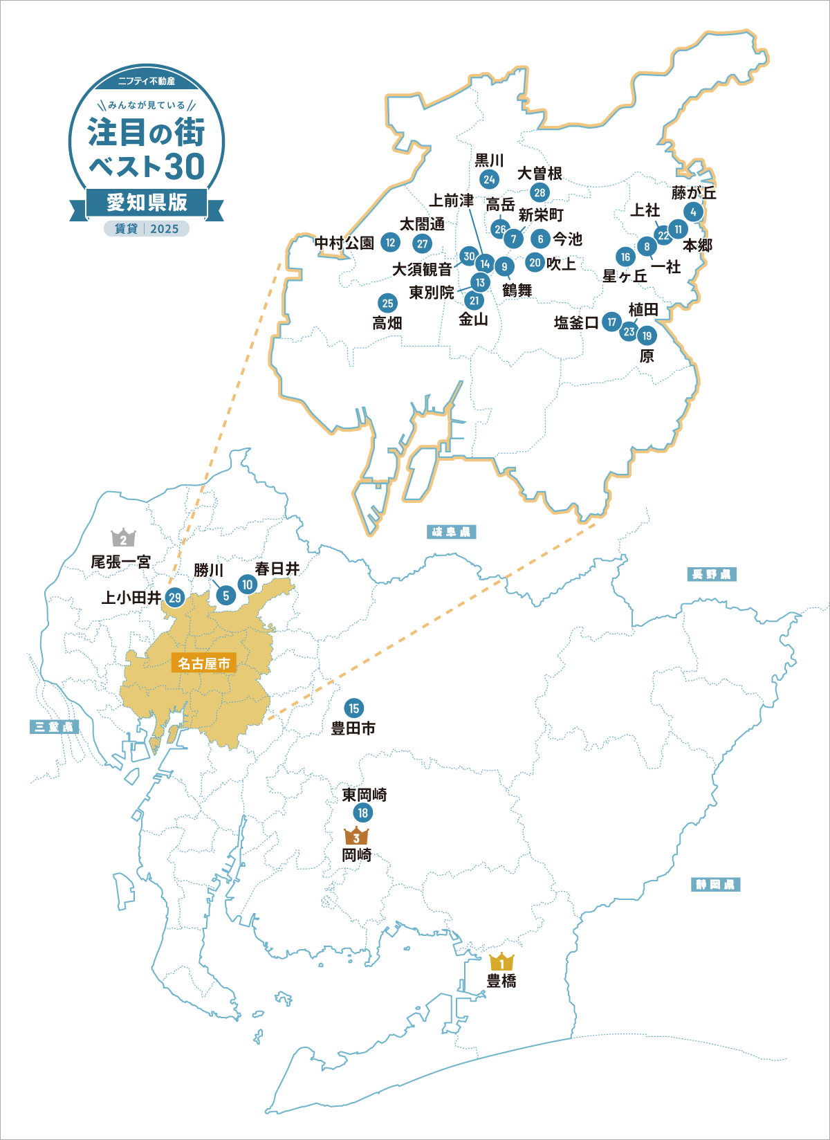 注目の街ランキングベスト30 愛知県版 2025 1~10位