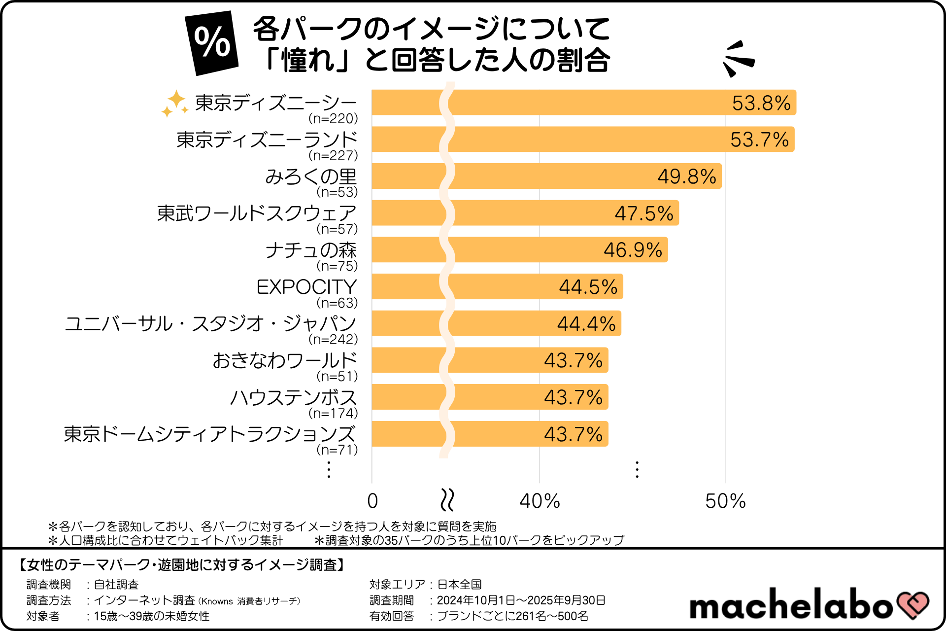 そこで、株式会社マシェバラトークが運営するオウンドメディア『マシェラボ』( https://machetalk.jp/media/ )は、全国の15歳~39歳の未婚女性を対象に、国内の主要なテーマパーク・遊園地に関するイメージ調査を実施しました。
