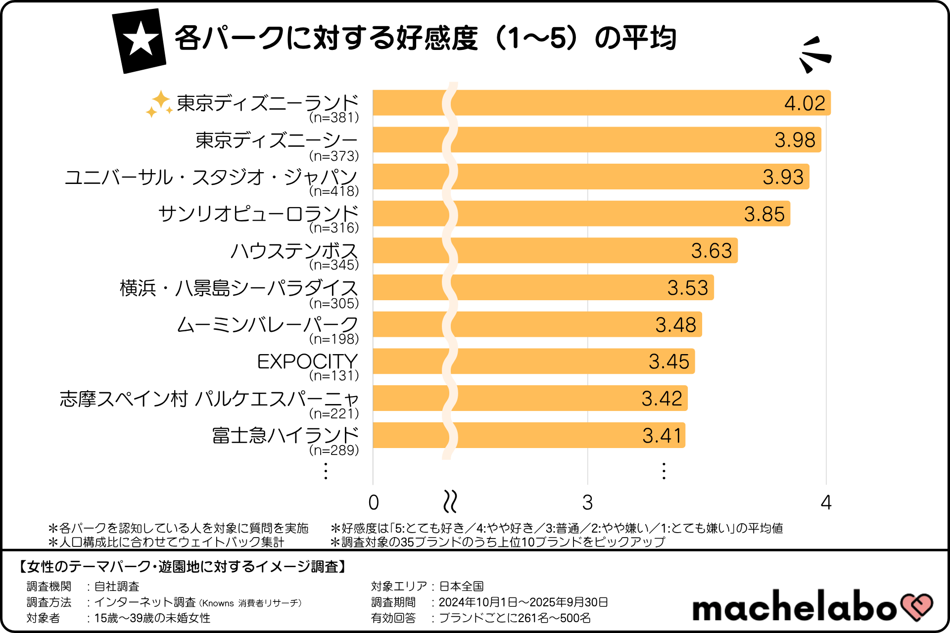 これまで様々なテーマで各パークの個性に注目してきましたが、最後に総合的な「好感度」を見ていきましょう。