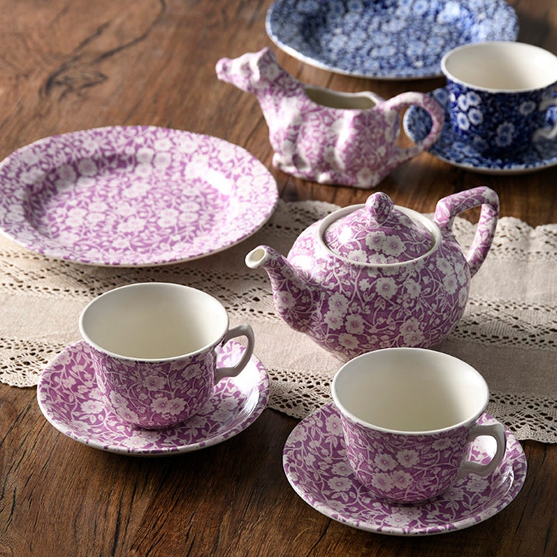 1851年創業の英国陶器ブランド「バーレイ」で高い人気を誇る、キャリコ柄の新色シリーズ。紫とピンクの中間色で、花咲くピンクをイメージカラーとしています。明るく華やかな色柄が、ティータイムを彩ります。