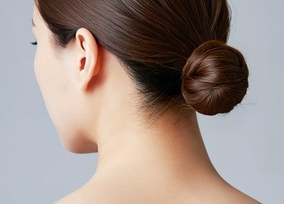 もみあげを立ち上げるのがおくれ毛のスタイリングのポイント。