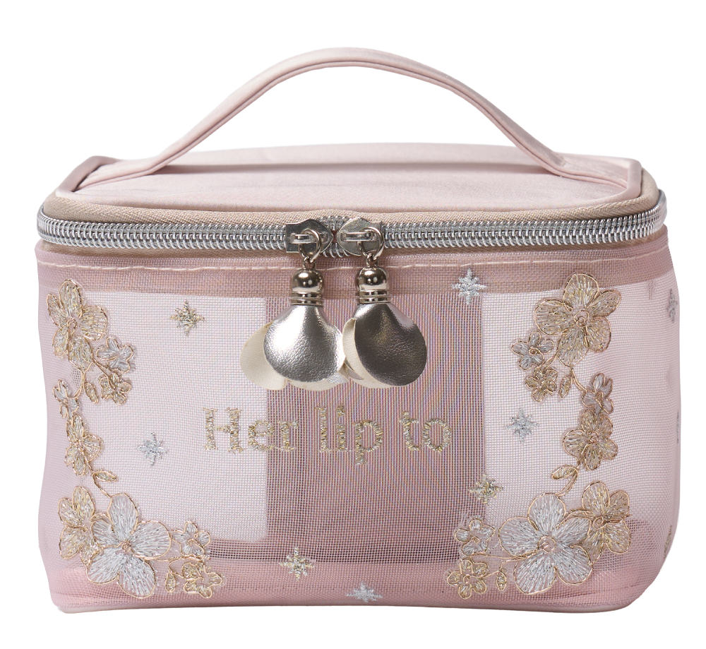 パフュームオイルの煌めきを想起させるゴールドとシルバーのラメ刺繍を施したメッシュバニティポーチは、トレンドのメタリックディテールを取り入れたホリデームードを高める特別なデザイン。軽やかな透け感と華やかさを兼ね備え、コスメやフレグランスの収納にも最適なサイズ感です。特別なホリデーシーズンをより華やかに彩ります。