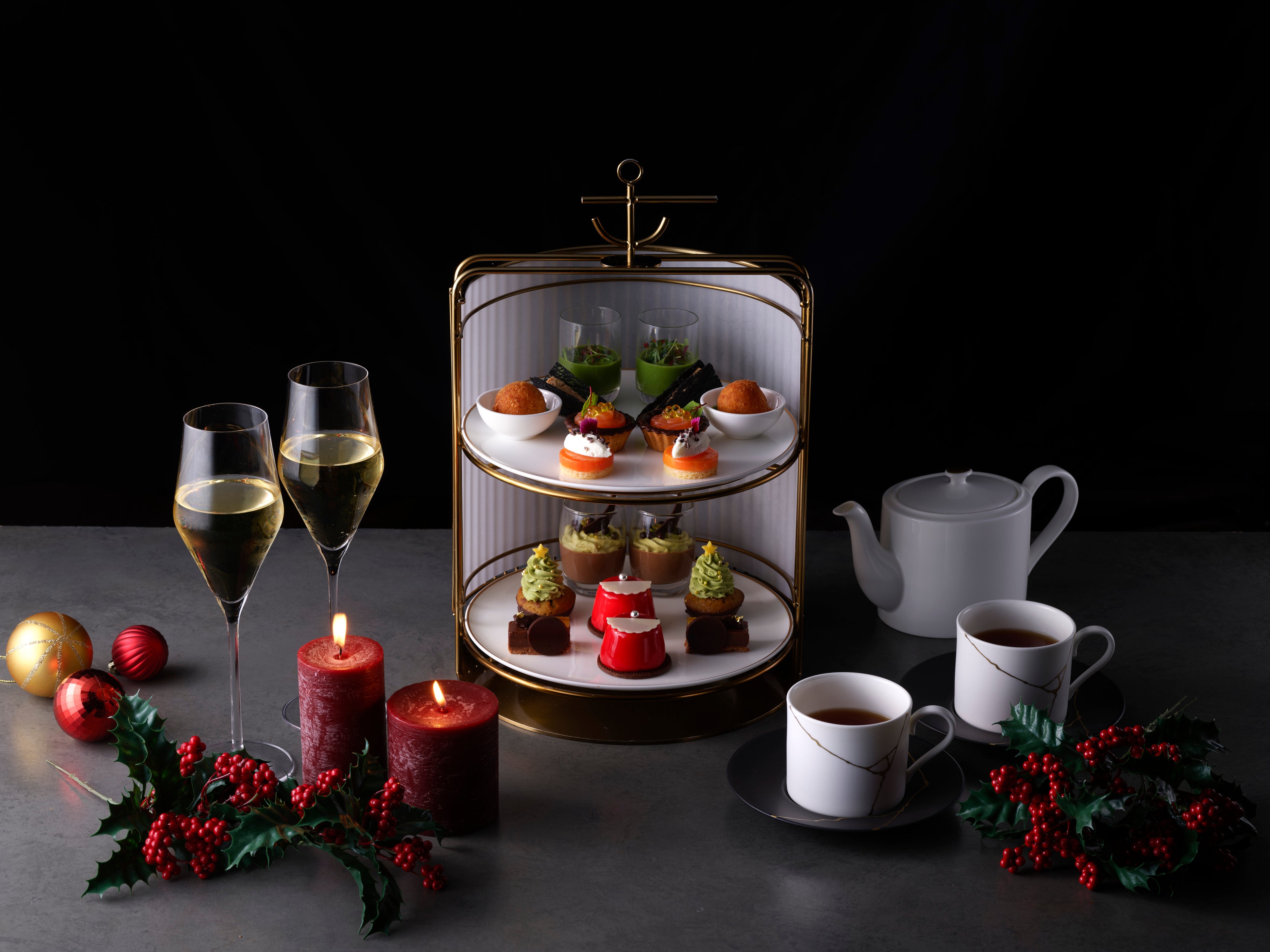 クリスマスムードをまとった華やかなスイーツとセイボリーが、ホリデーシーズンの気分を一層盛り上げます。さらに日が沈んだ後には、アルコール/ノンアルコールのフリーフローとともに楽しむ「クリスマス ナイトアフタヌーンティー with リンツチョコレート」も登場。リンツの濃厚なチョコレートが彩る、昼と夜それぞれの贅沢なひとときをお届けします。