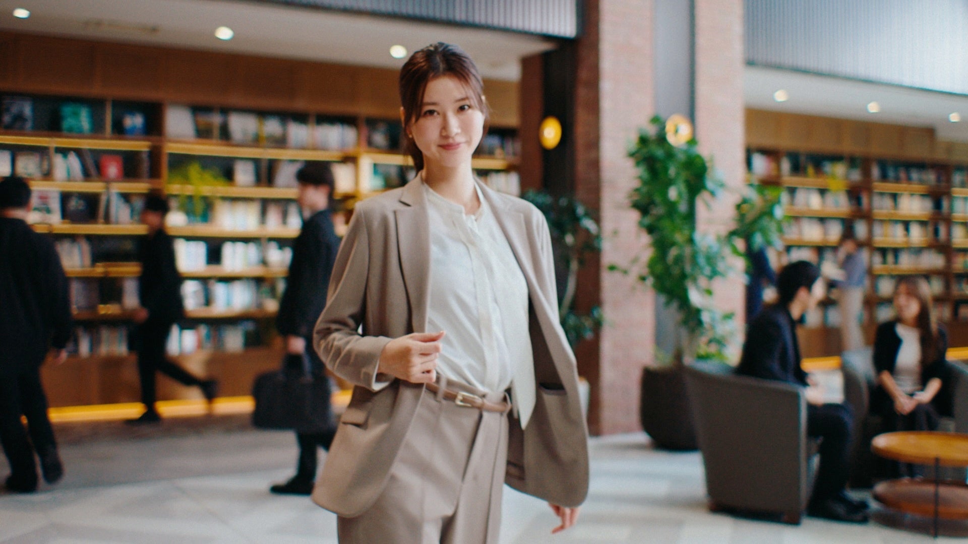 長時間の撮影でしたが、ずっと着ていても疲れないくらい軽くて体にフィットするスーツで、しかもデザインも可愛くてお気に入りです!リズム感のあるCMなので、スーツの動きやすさや軽さ、柔らかさが伝わるような動きを意識して撮影しました。本当に着心地が良くてとてもスムーズに撮影できました。