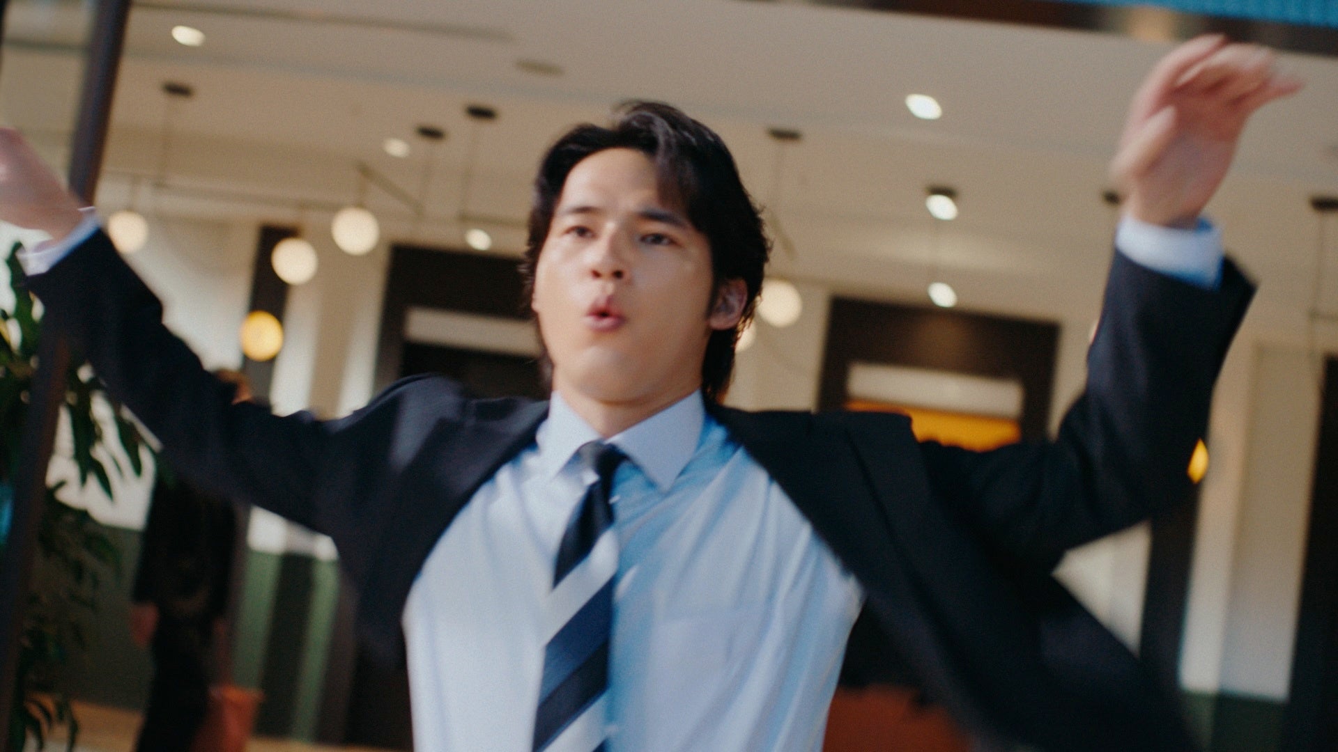 「洋服の青山」、「スーツスクエア」から新たに展開する新シリーズ『みんなのスーツ』のデビューを飾る今回のCMは、水上恒司さん生見愛瑠さんのお二人が軽快にステップを踏みながら登場する、楽しいCMとなりました。水上さん生見さんともしっかりリハーサルにご参加いただき、動きやステップを何度も繰り返していらっしゃいましたが、本番はさらにテンション高くアドリブも交えて演技していただき、躍動感ある素敵な映像になっています!