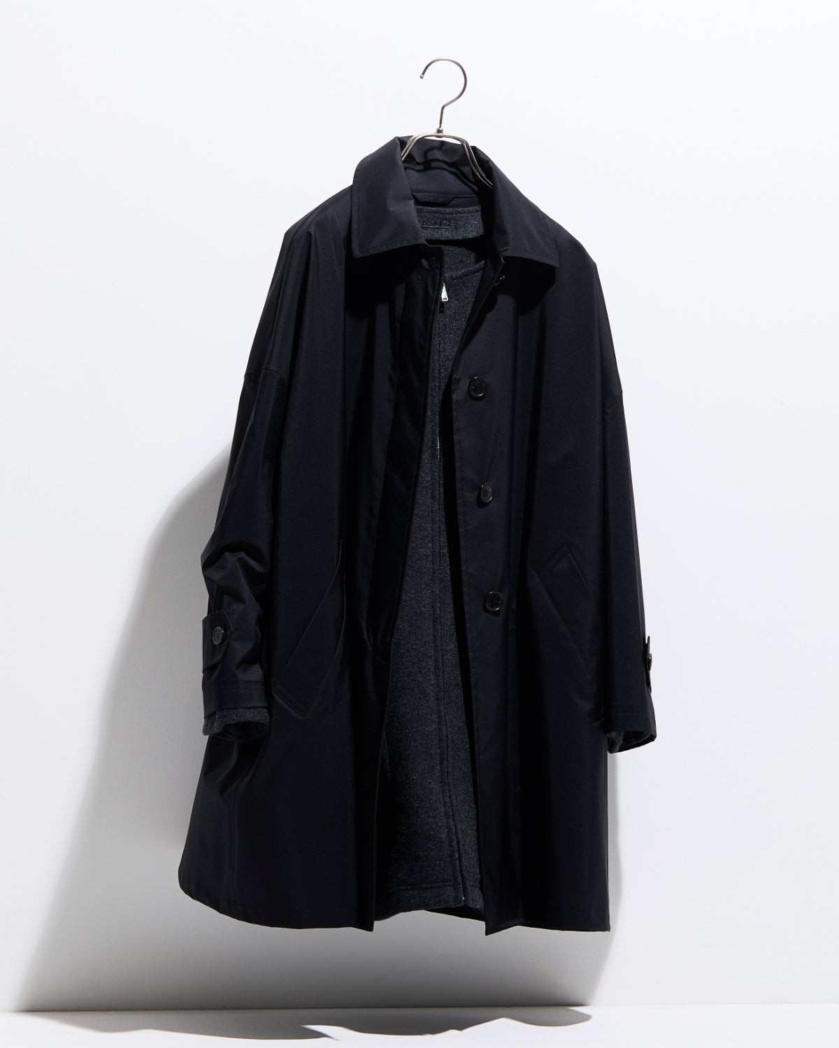 「BLACK OF BLACKs」は、濃い黒に染めることが難しい合成繊維に特殊技術を施し、通常より深みのある黒を実現した独自開発生地による商品群です。当社の全社横断プロジェクト「商品開発委員会」が、繊維メーカーであるセーレン株式会社(本社:福井県福井市、以下、セーレン(株)との2年にわたる共同研究により2024年秋冬に商品化、10型のコート・アウターを展開し、高い販売実績を達成しました。