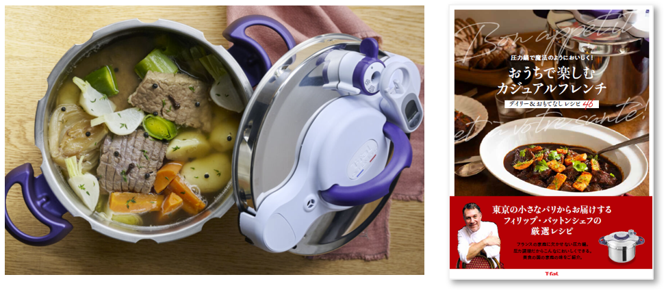 株式会社グループセブ ジャパン(本社:東京都港区/代表取締役社長:ジュリアン・メジャー)は、2025年10月より、ティファールの圧力鍋をご購入いただいたお客様を対象に、圧力鍋のレシピブック「圧力鍋で魔法のようにおいしく! おうちで楽しむカジュアルフレンチ デイリー&おもてなしレシピ46」をプレゼントするキャンペーンを実施いたします。ティファールストア(※)の店頭では2025年10月22日(水)より、公式オンラインストアでは12月1日(月)より開始し、なくなり次第終了となります。
