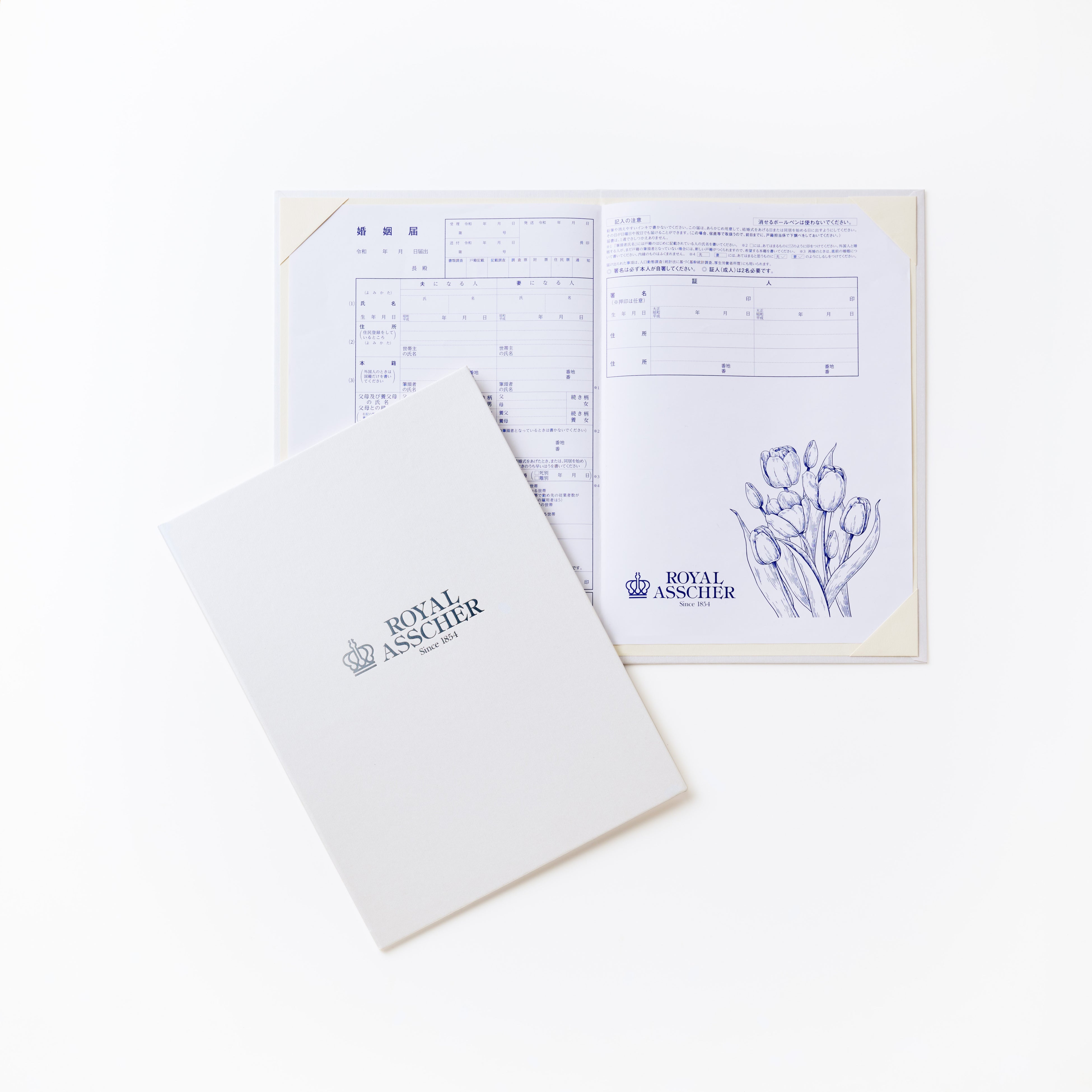 マリッジリングペア(エタニティリング含む)をご成約のお客様に、オリジナル婚姻届をプレゼントいたします。