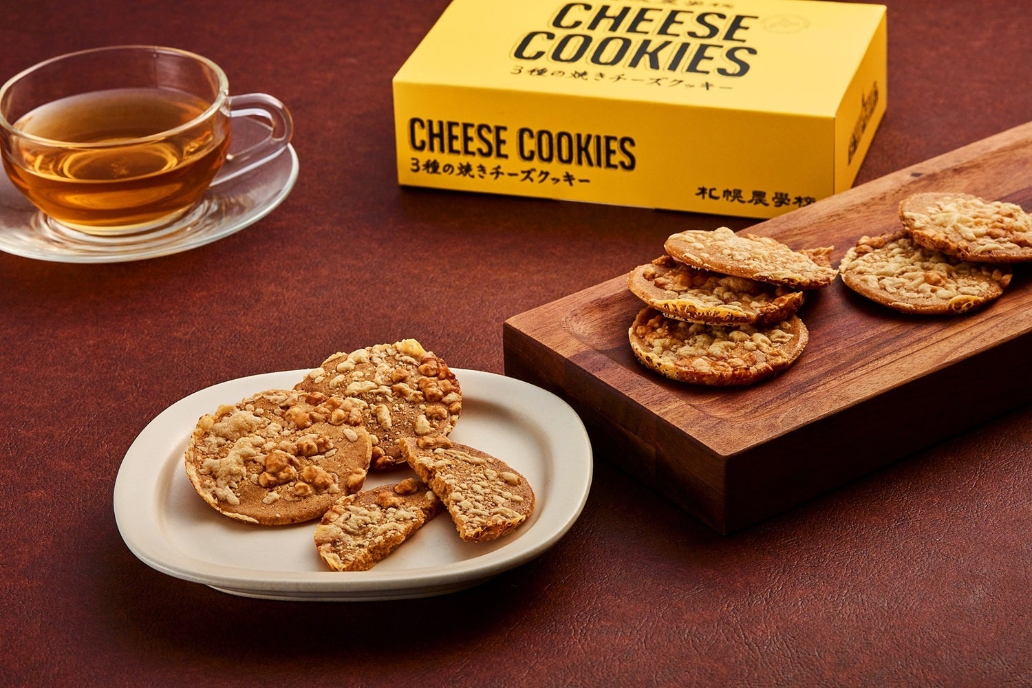 北海道の生乳から作る北海道産パルメザンチーズをクッキー生地に練り込み、3種類のチーズをのせて焼き上げました。焼いたチーズの香ばしい風味とカリカリ、サクッとした濃厚な味わいが特徴です。