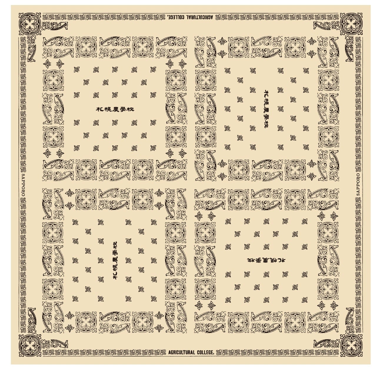 書籍「札幌農学校」の表紙に見られる歴史的装飾を、ペイズリー柄としてデザイン。頭や首に巻いたり、お菓子を包んだり。様々な用途でご使用いただけます。