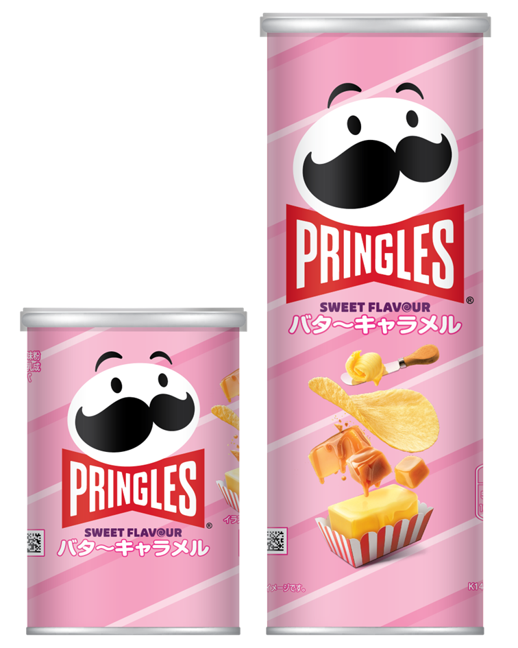 スイート系フレーバーは、ポテトチップス市場でも年々拡大しており、2024年の売上規模は2020年と比較すると+24%と大きく伸長しています※。「プリングルズ バターキャラメル」は、もともと韓国で人気のフレーバーで、昨年日本に初上陸。冬の季節にぴったりなバターとキャラメルのとろけるような濃厚な味わいに加えて、ピンクのパッケージというユニークなコンセプトで直近1、2年のプリングルズの期間限定品のなかでもトップのヒット商品となりました。昨年はショート缶のみの販売でしたが、今年は昨年の反響を踏まえてロング缶も発売いたします。