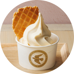 クッキーのようなソフトで軽い食感のワッフルチップを添えた、ベイクドチーズケーキ風味のソフトクリームです。
