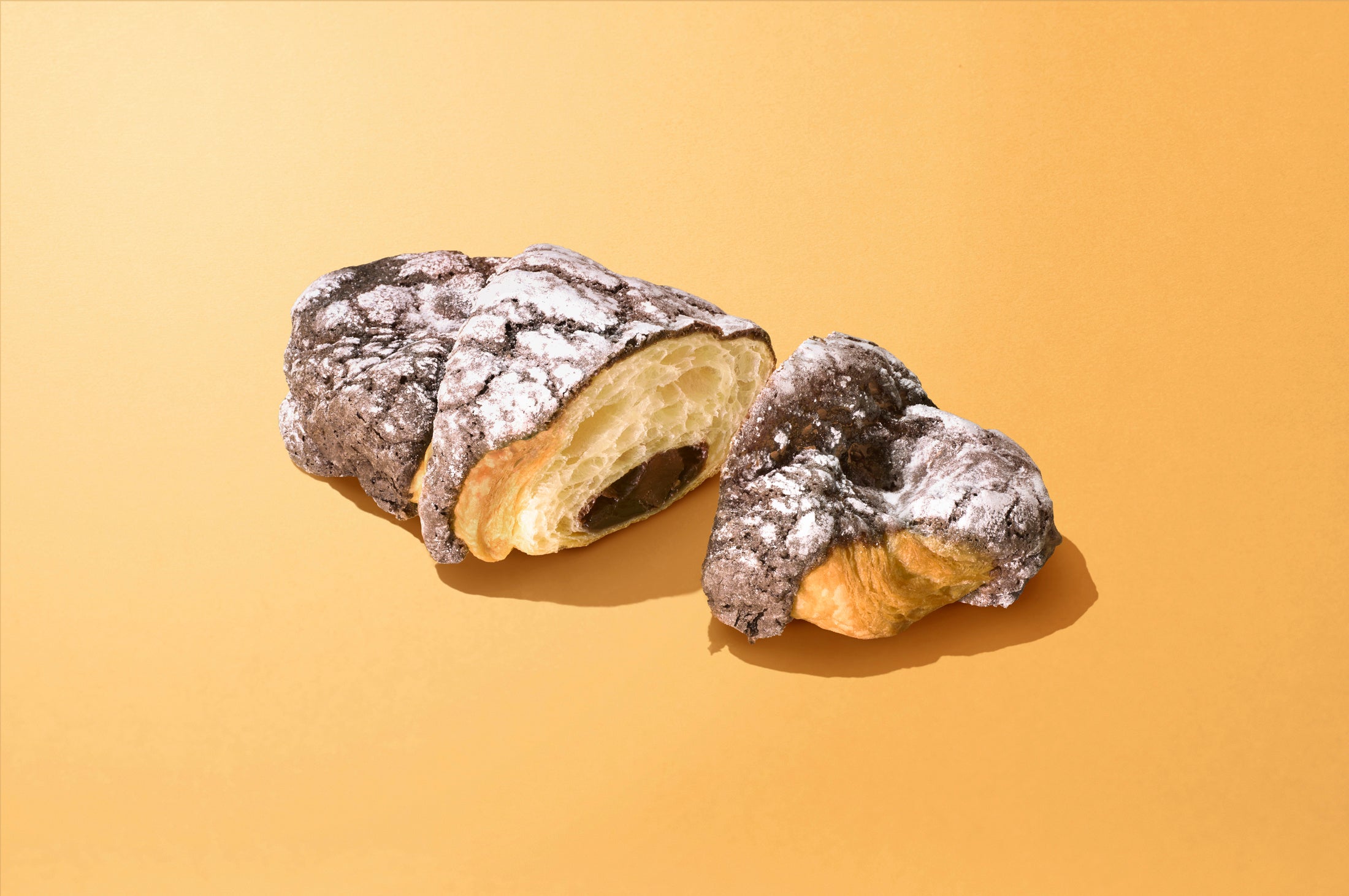 【内容】チョコクリームとチョコダイスを巻き込んだクロワッサンに、チョコマカロン生地を絞って焼き上げました。サクッとした食感とチョコの味わいが楽しめるスイーツパンです。