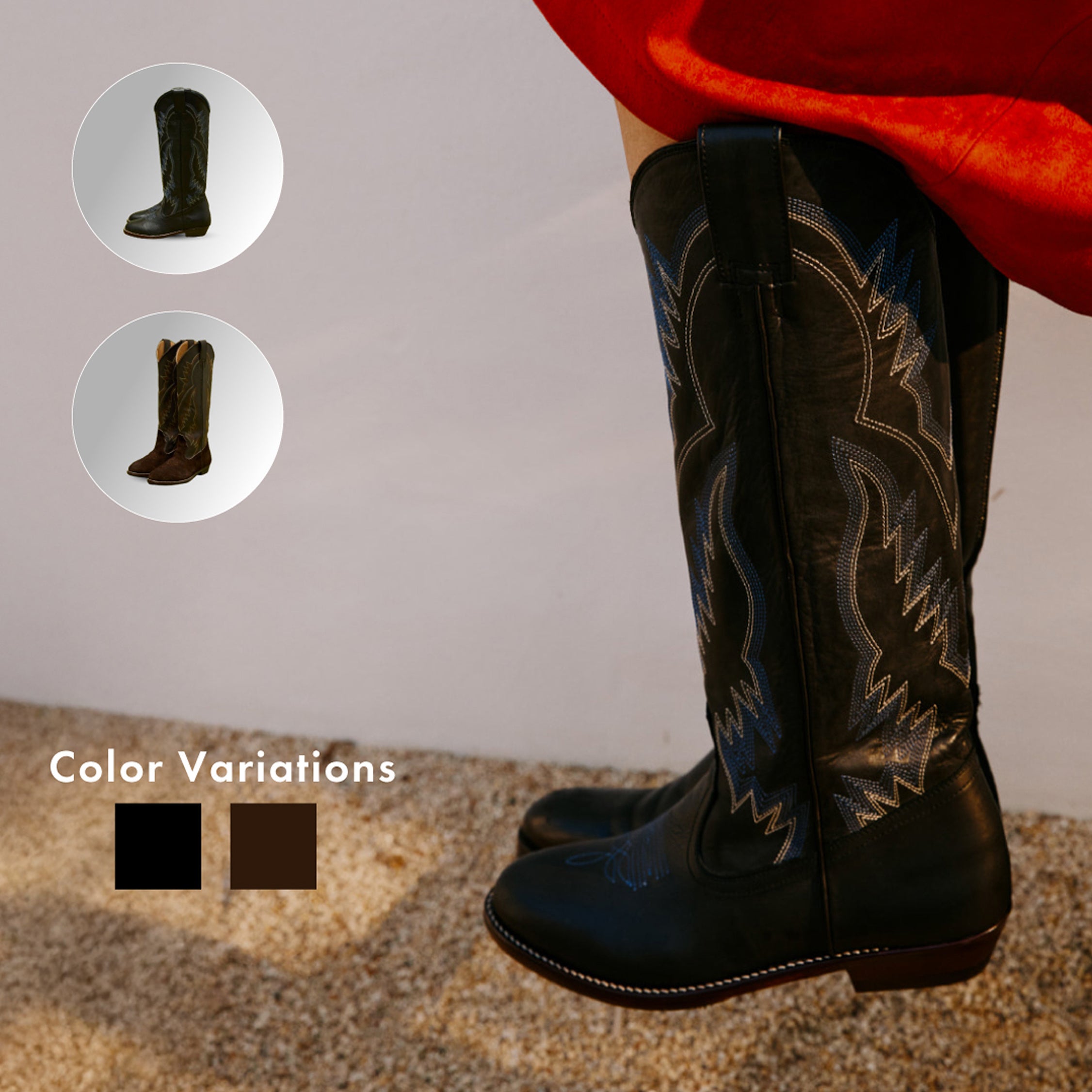 長年温めてきた念願のウエスタンブーツがついに登場。美しい立ち姿を追求し、筒の細さと形状に徹底的にこだわった一足です。日本人の足に合う木型を採用し、牛革の表裏とレザーソールを使用。