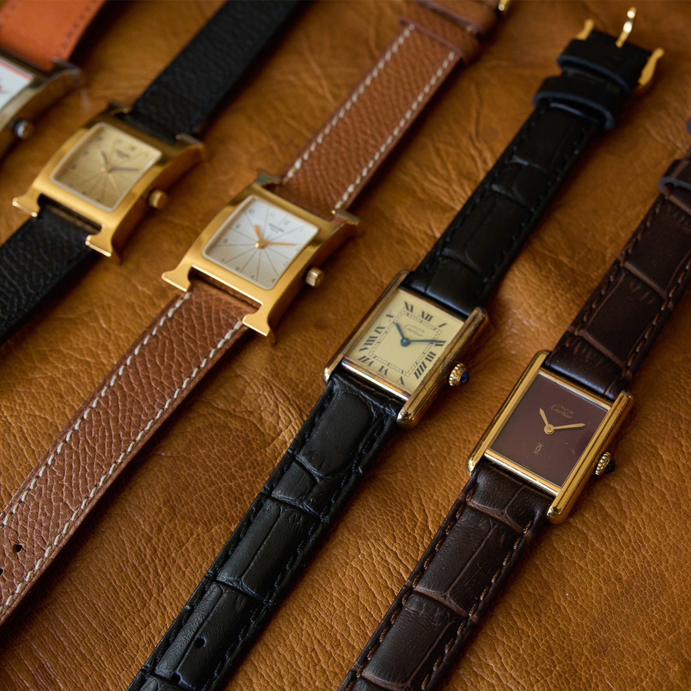 今回のPOPUPでは、ヴィンテージウォッチをセレクト。いずれも状態の良いバンド付きで、女性の腕にすっと馴染む小ぶりで洗練されたフェイスが魅力です。