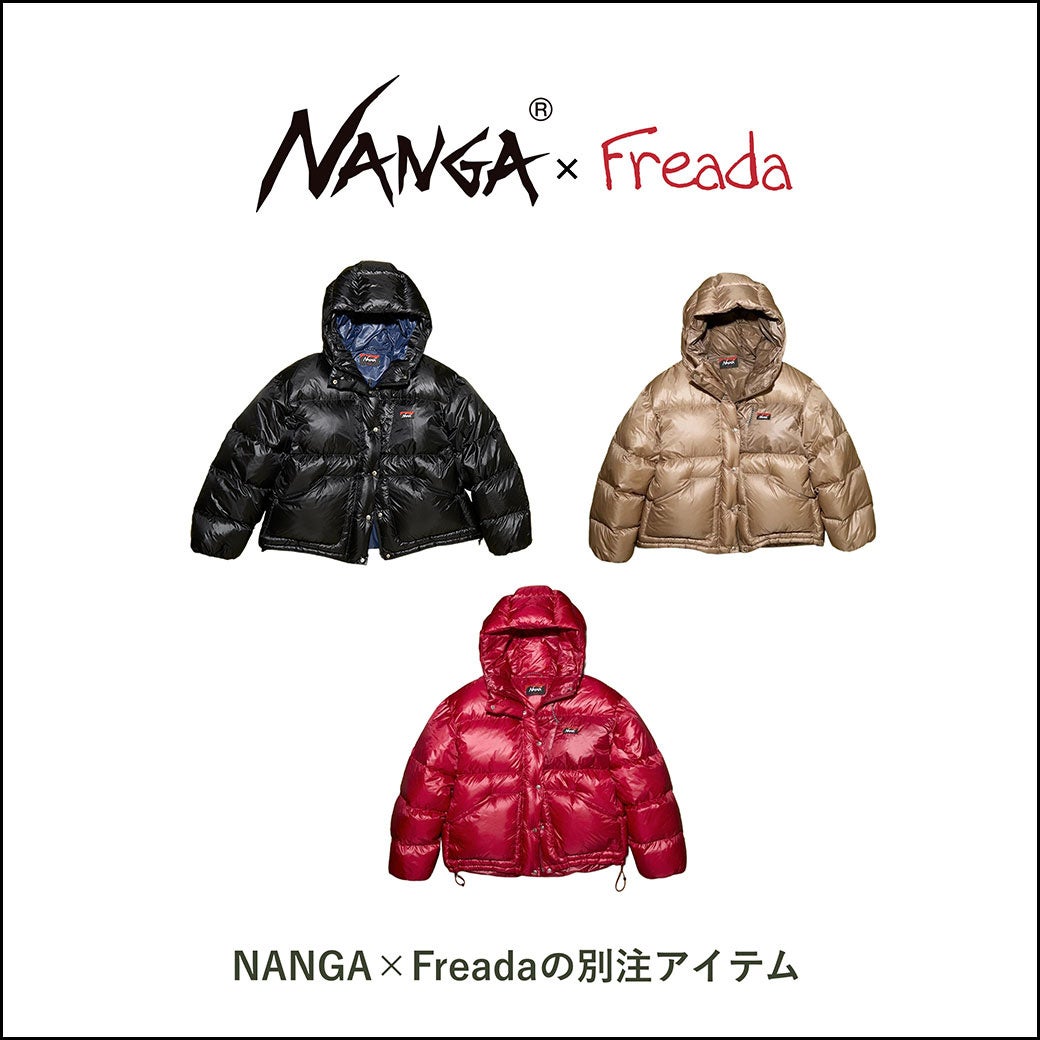 Freadaのインラインでは、日本のアウトドアブランド「NANGA(ナンガ)」との別注ダウンジャケットが注目アイテム。