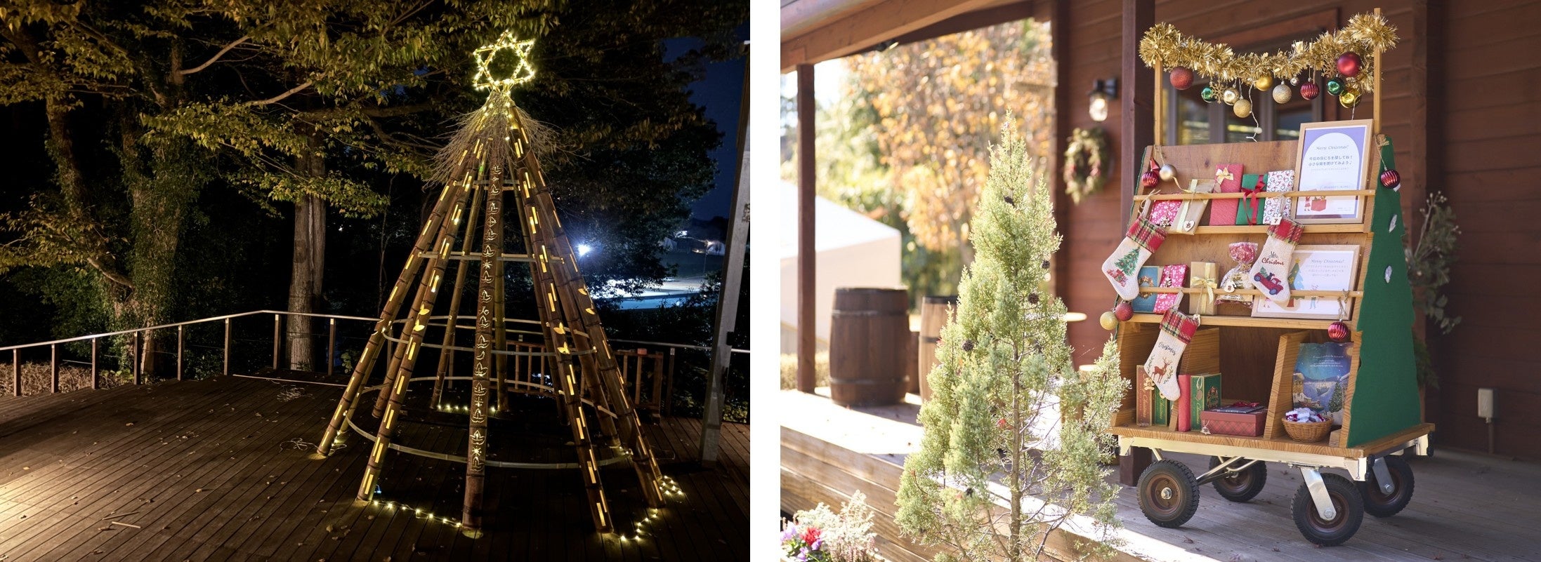 また、12月1日(月)~12月25日(木)の期間には、竹林整備のために伐採した竹を使って製作した約3mの「バンブークリスマスツリー」やクリスマスまでのカウントダウンを楽しむ「アドベントカレンダー」も登場し、クリスマスシーズンを彩ります。