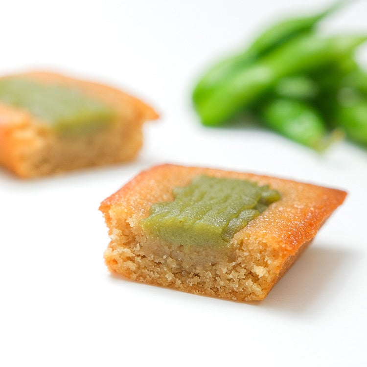 原材料:バター、卵白、きび糖、アーモンドプードル、小麦粉、黒枝豆、抹茶、寒天粉