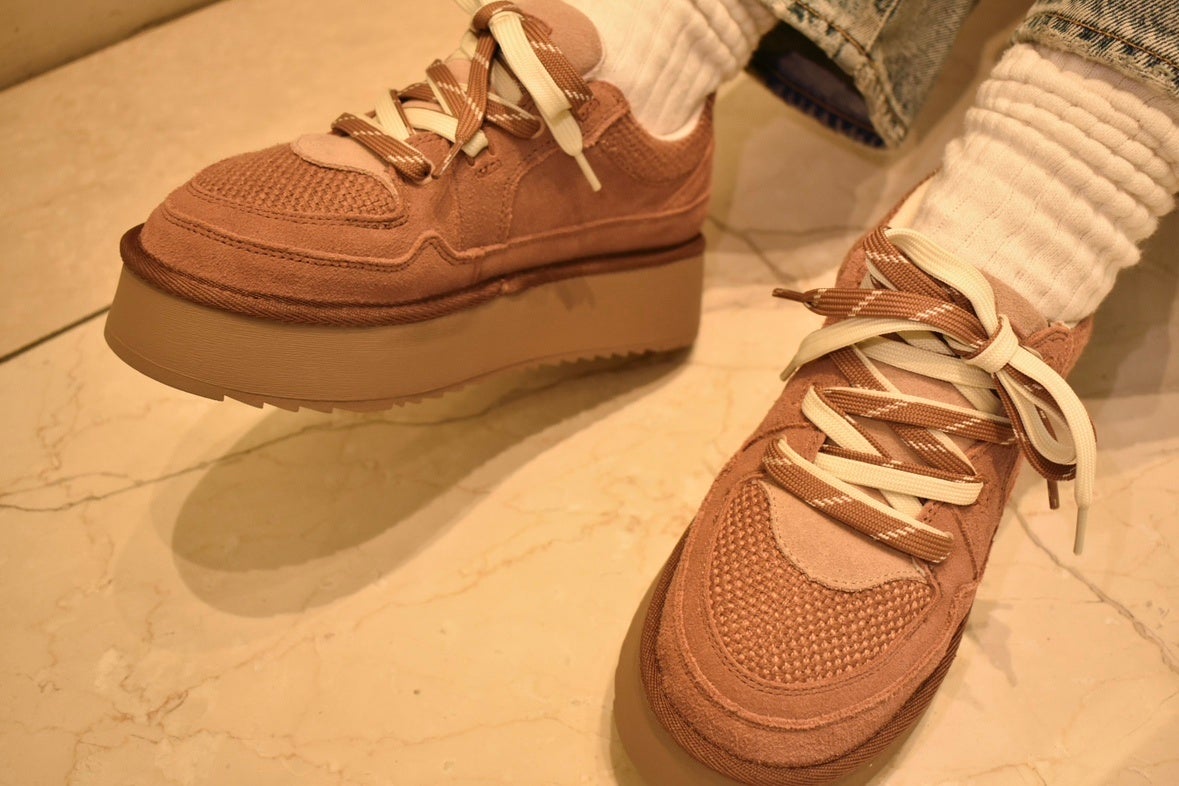 近年、スニーカートレンドにおいては「厚底」「異素材ミックス」といったデザイン性の高いモデルが人気を集めています。今回ミネトンカでは、従来のモカシンの技術と快適性を活かしながら、現代のライフスタイルに寄り添う厚底スニーカーの開発に取り組みました。