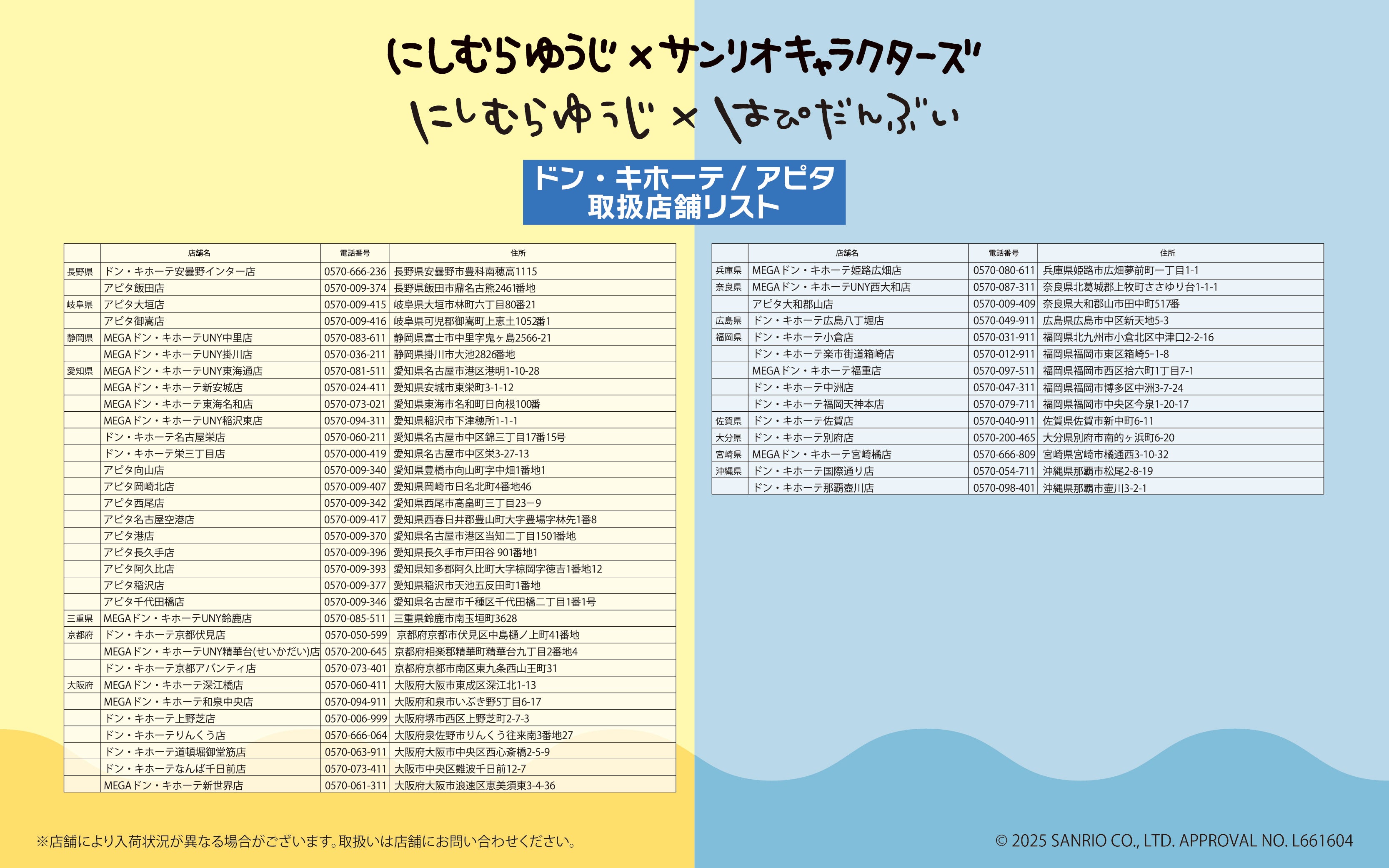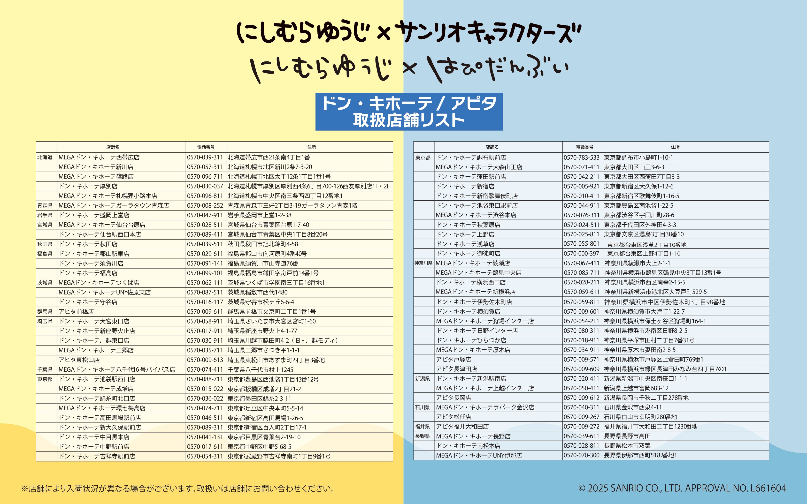 「にしむらゆうじ×サンリオキャラクターズ・はぴだんぶい」コラボアイテムを全国のドン・キホーテ、アピタでゲットして、かわいいがいっぱいの毎日をお過ごしください(ハート)