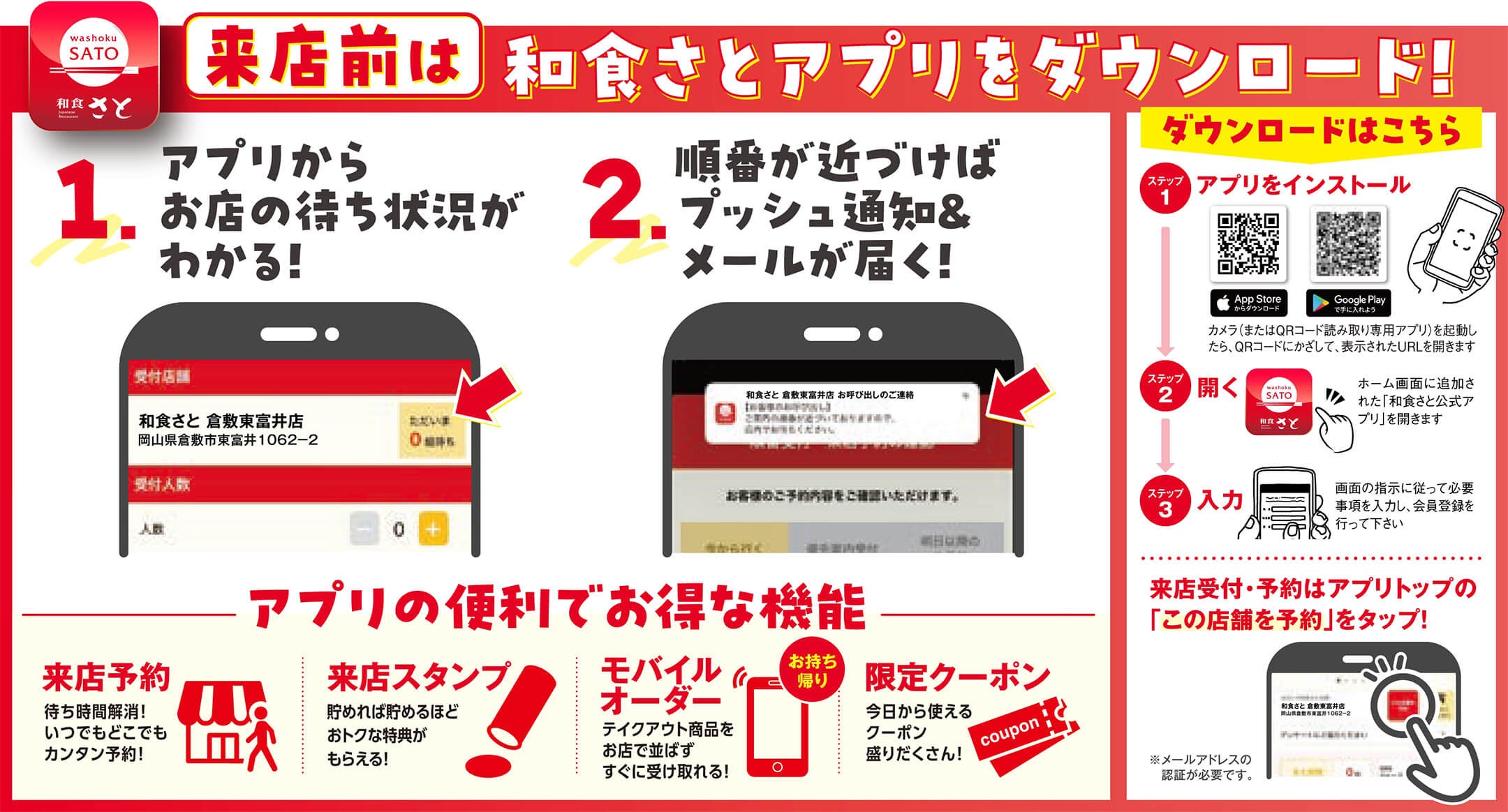 和食さと公式アプリのご利用で、さらに便利に、お得に!
