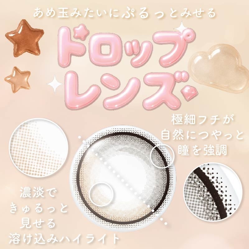 【ドロップレンズ】デザインポイント・濃淡で「きゅるっ」と見せる溶け込みハイライト