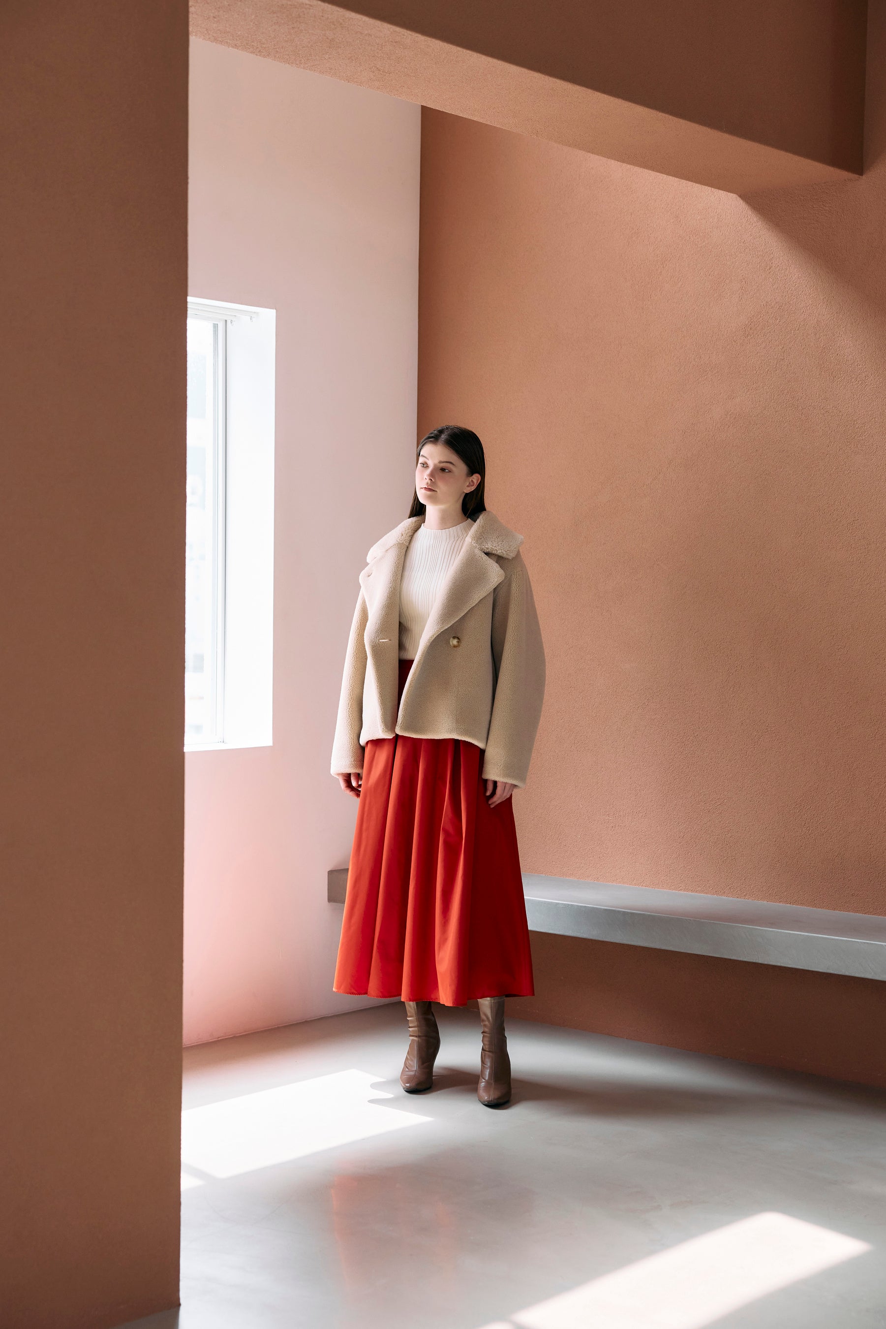 Coat ¥41,800 Knit ¥8,800 Skirt ¥20,900