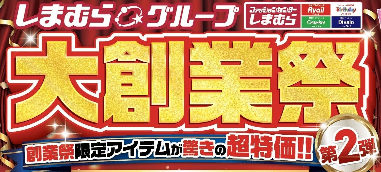 株式会社しまむら(本社所在地:埼玉県さいたま市大宮区北袋町1-602-1、代表取締役:高橋 維一郎)は、10月29日(水)より、全国のファッションセンターしまむらにて「大創業祭 第2弾」を開催いたします。うれしいお買い得商品から最旬トレンドアイテムまで、ワクワクする商品を豊富にご用意し、皆さまのご来店を心よりお待ちしております。
