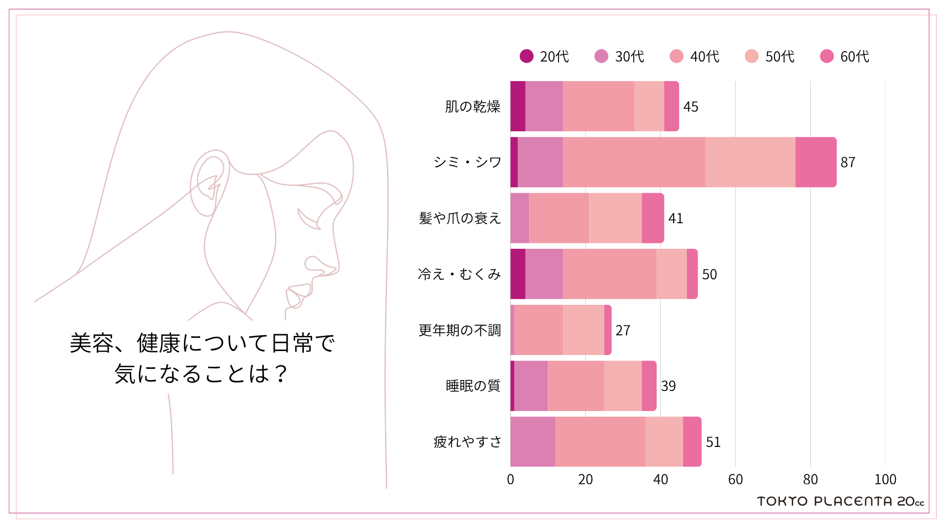 本調査では、女性の年齢層ごとの関心や課題、プラセンタに対する認知度などを把握し、
