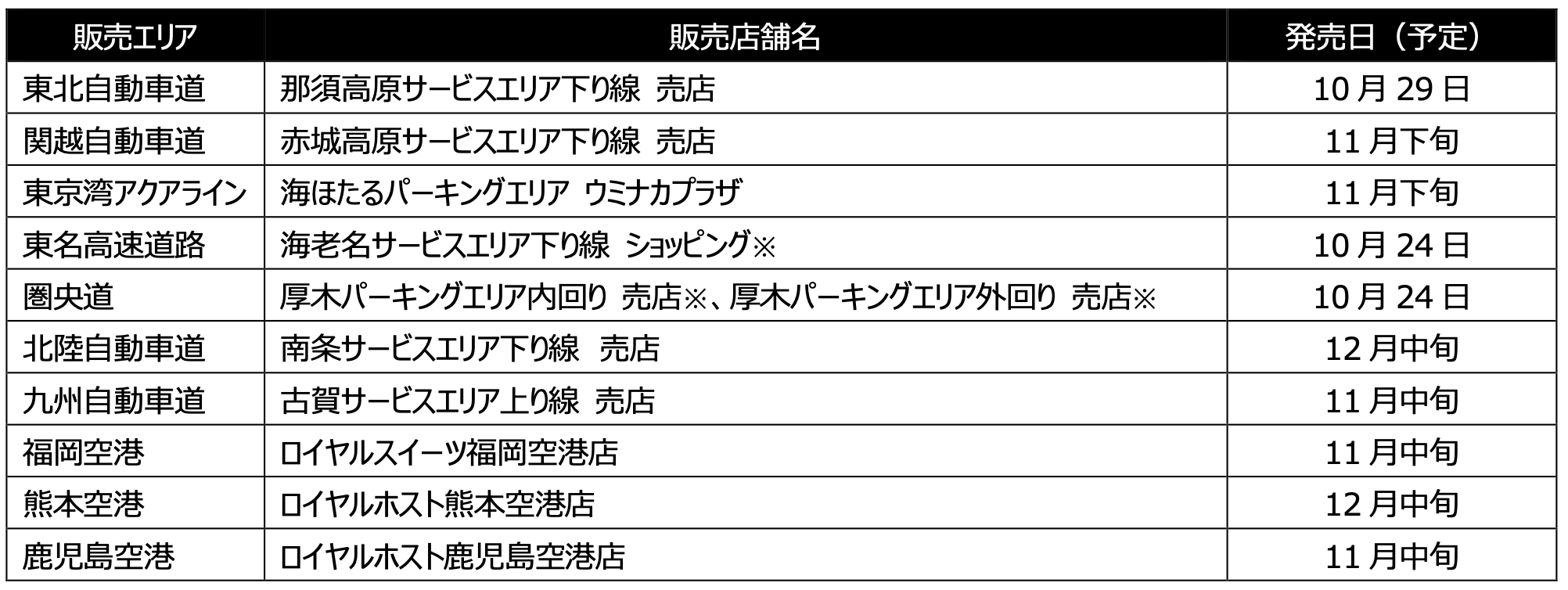 ※うち3店舗は10月24日(金)より販売開始、その他の店舗は順次発売予定。