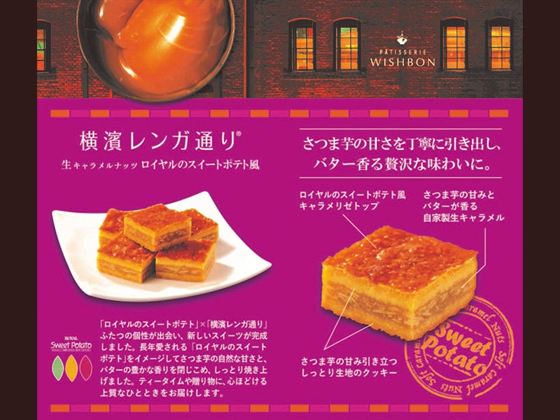 ロイヤルグループで食品事業を担うロイヤル株式会社(本社:福岡県福岡市、代表取締役社長:白岩 雅博)は、株式会社ウイッシュボン(本社:神奈川県横浜市、代表取締役:永野 健一)が展開する「横濱レンガ通り」と「ロイヤルのスイートポテト」がコラボレーションした『横濱レンガ通り ロイヤルのスイートポテト風』を10月24日(金)に発売しました。今後は順次取扱店舗を拡大してまいります。