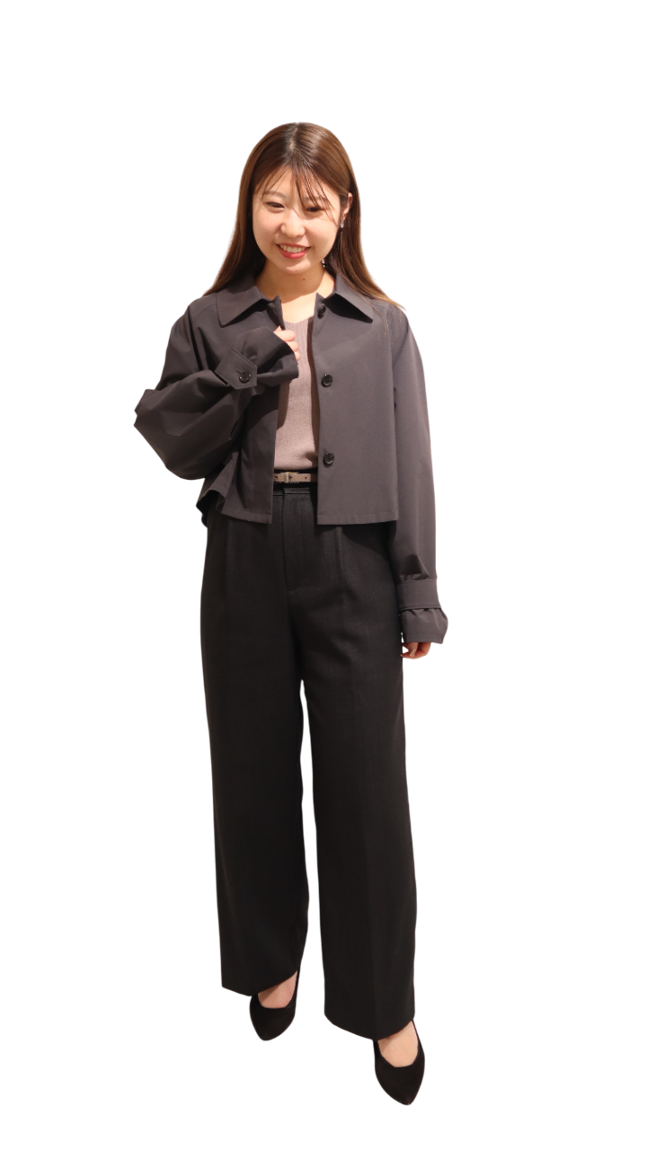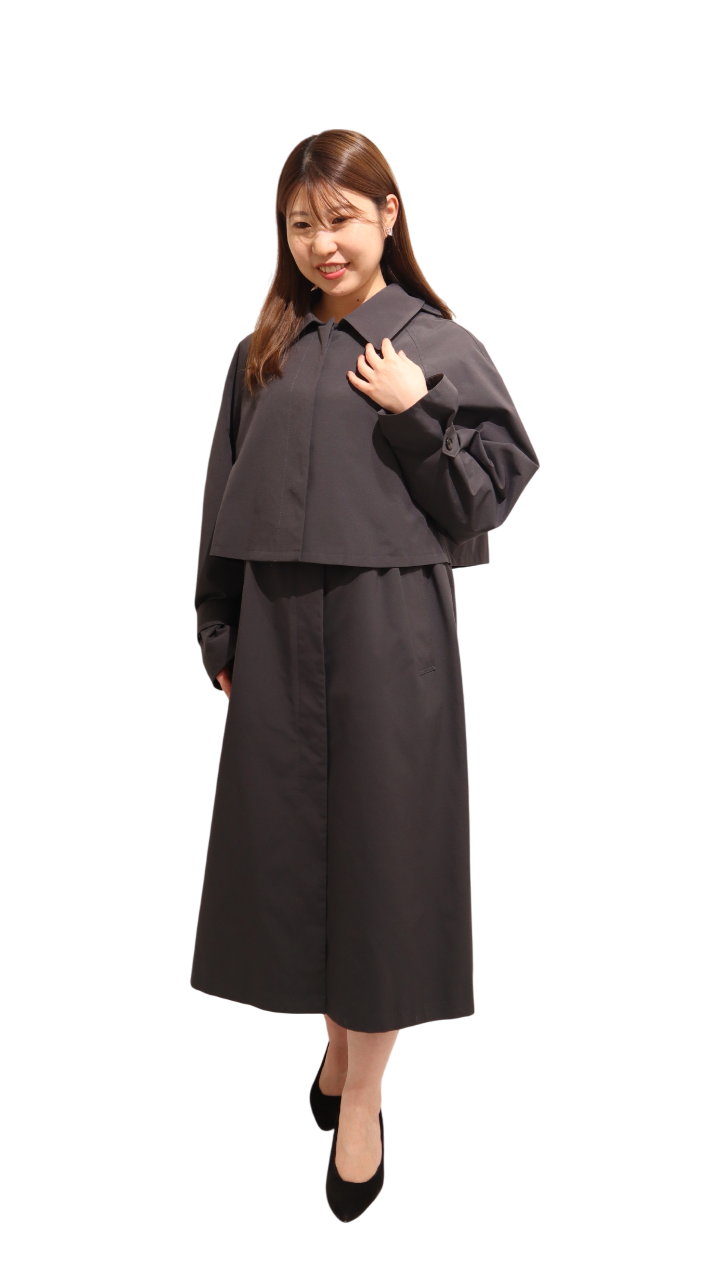 今回のコートは、普段接客をしている中で日々自分自身が感じること、他スタッフが感じていることをヒントにアイデアが生まれました。「朝晩の気温差がある季節に羽織れるコート」「キャリアでも使いやすいトレンチコート」といったこれまでの当社にありそうでなかった商品を提案。当社の商品第一部やメーカー様とサイズ感やカラーなど試行錯誤しながら、理想のコートを作ることができたので、自信を持ってお客様にご提案していきたいです。