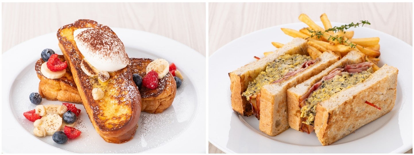 「ジャンドゥーヤフレンチトースト」/「トリュフ&チーズスクランブルエッグとベイクドベーコンのサンドウィッチ」