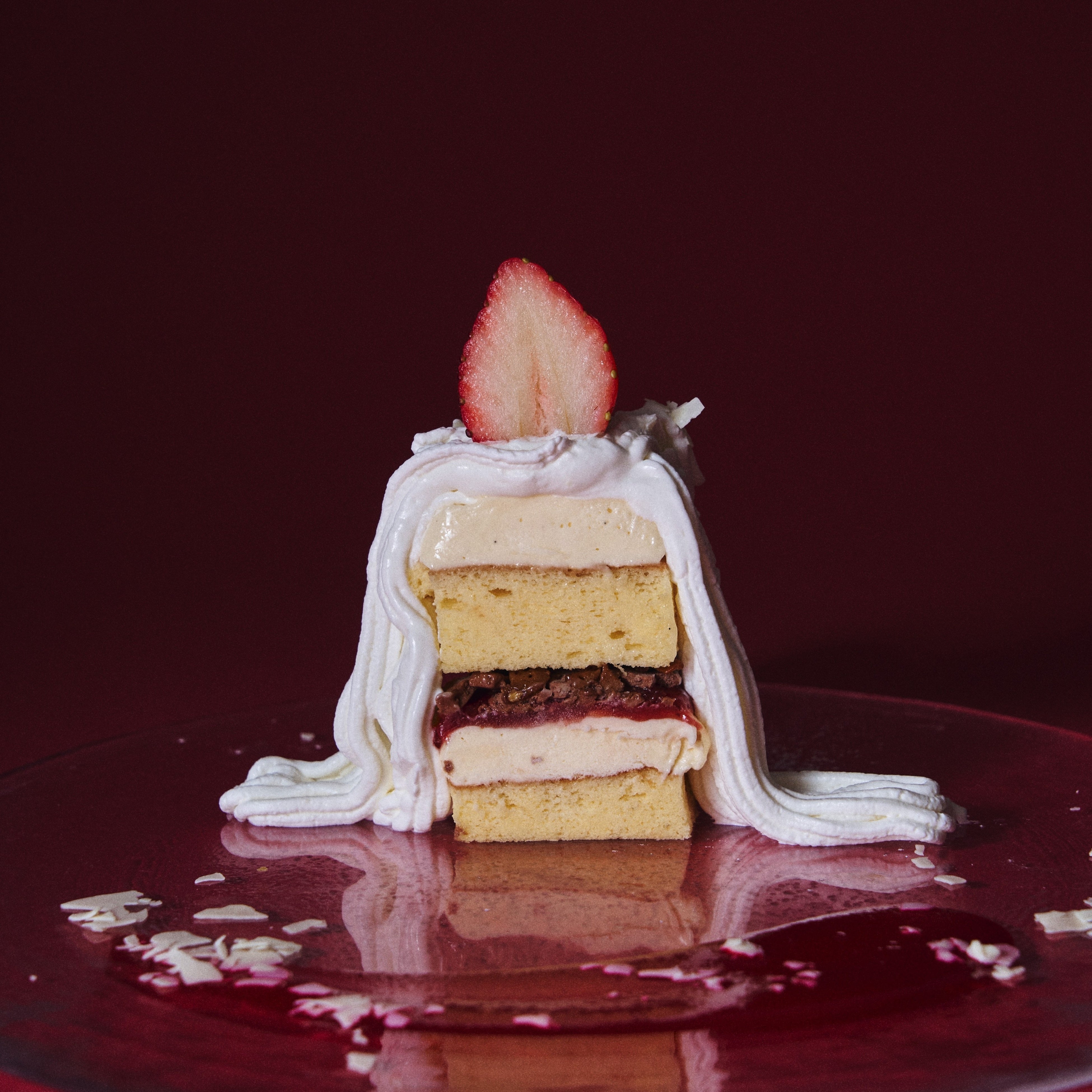 ひとさじごとに、やさしく溶けていく“生”のくちどけ。しっとりとした“生”シフォンに、いちごの甘酸っぱさをアクセントに添えました。ちいさな“ホールケーキ”で過ごす、わたしだけのクリスマス。