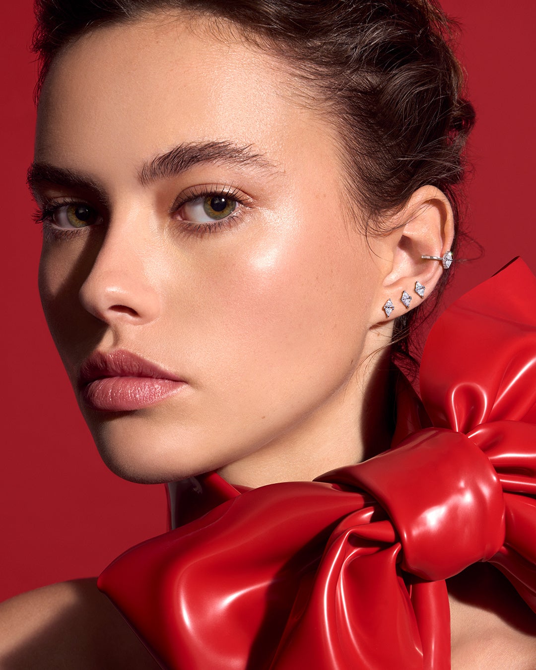 写真左・上から:「セブロン ロサンジュ ダイヤモンド イヤーカフ」135,300円、Pt / ダイヤモンド、「セブロンロサンジュ ダイヤモンド ピアス」各11,100円、Pt / ダイヤモンド ※シングルピアス