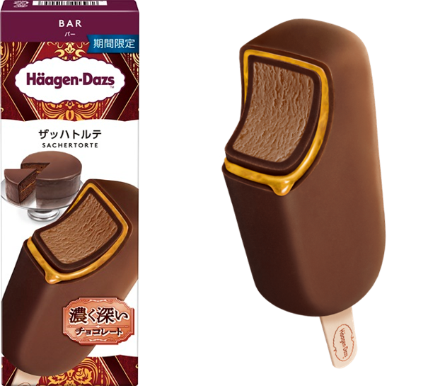 本商品は、濃厚なチョコレートと酸味のあるアプリコットを組み合わせたオーストリア発祥のスイーツ”ザッハトルテ”の味わいを、ハーゲンダッツらしい豊かな食感のバーで楽しめるアイスクリームです。