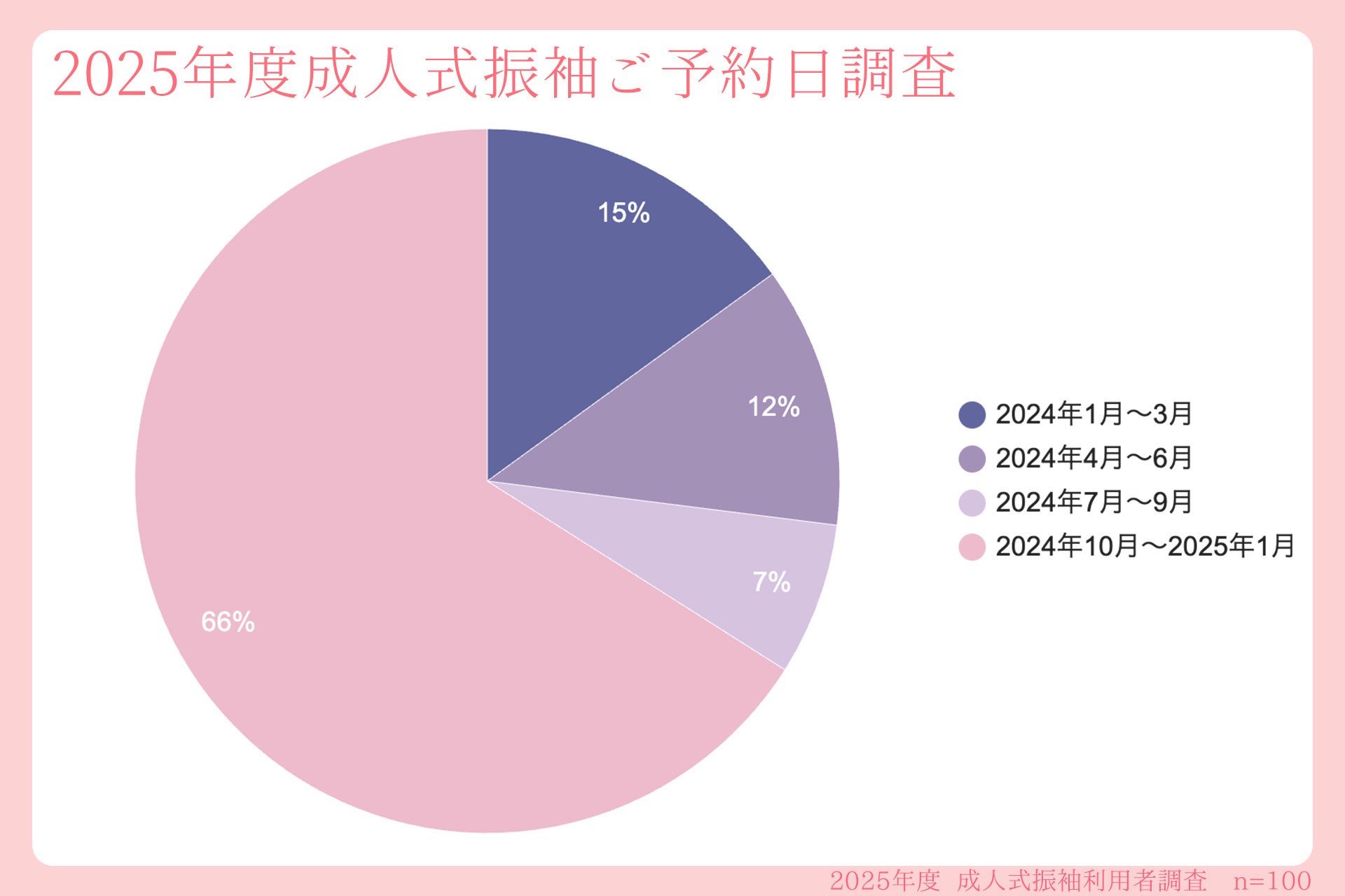 調査結果のハイライト:約6割が直前の「11月~1月」に予約を決定!振袖選びはこれからが本番
