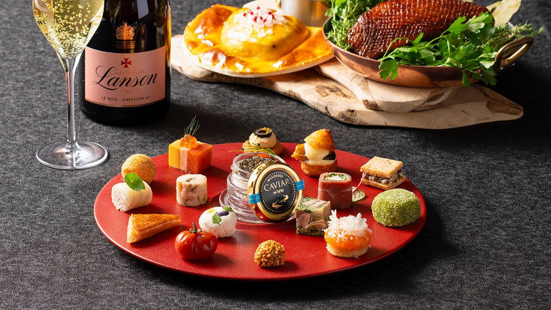黒毛和牛や京鴨をメインにキャビア、トリュフなど厳選食材を堪能できる全25品のクリスマス限定コース。英国王室御用達のシャンパーニュ・ランソンとともにお楽しみください。