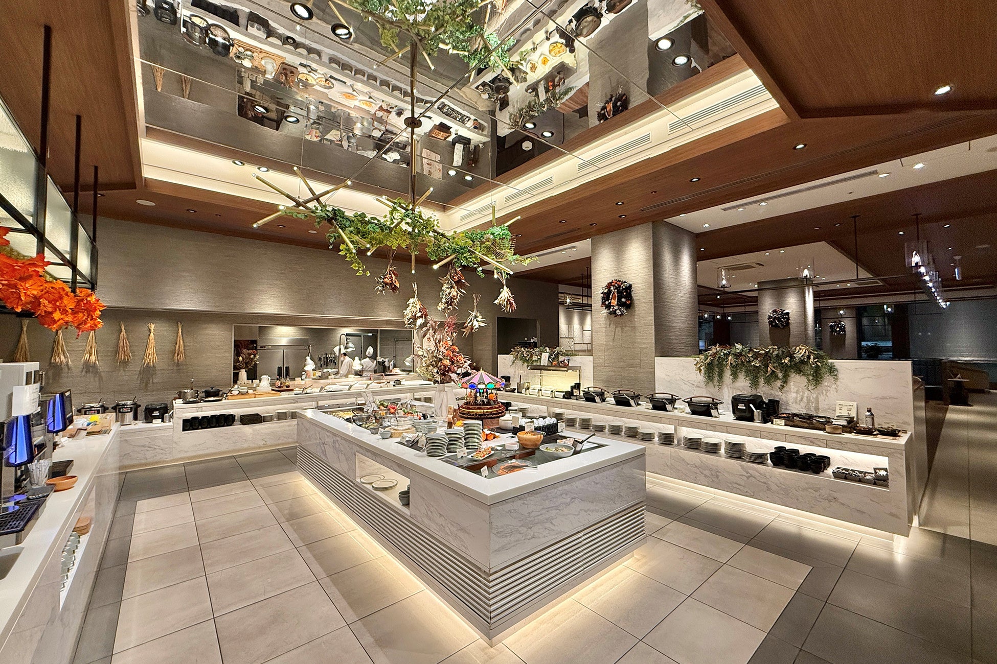 新鮮な地元野菜、目の前で切り分けられる肉料理、パティシエこだわりの自家製スイーツなど、多彩な料理をビュッフェスタイルで。ホテルらしい洗練と、気兼ねなく過ごせるフレンドリーな雰囲気の中、バラエティーに富んだメニューをお届けいたします。