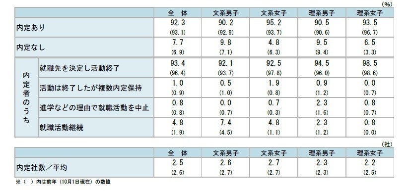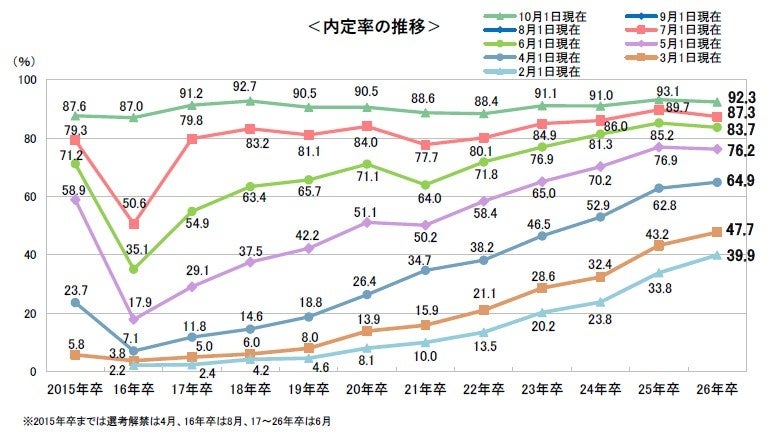 (26年卒)10月時点での内定率は92.3%。4年連続で9割を超える
