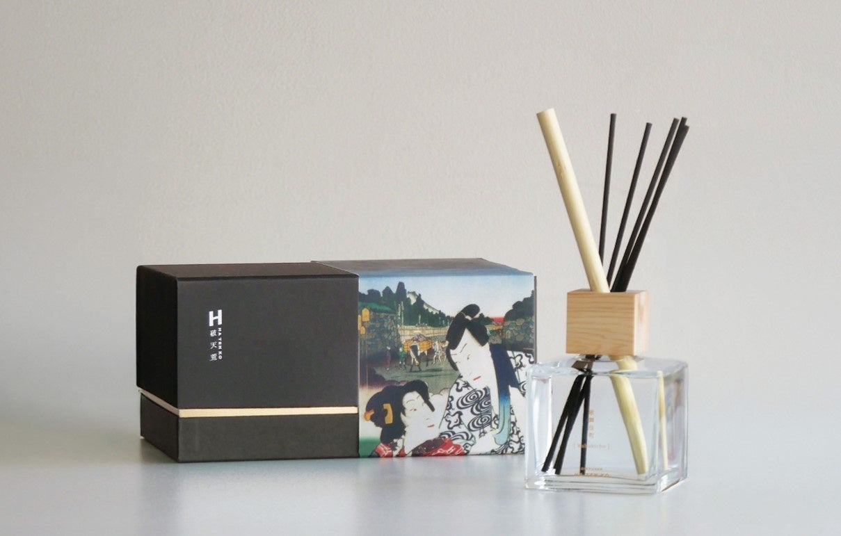 リードスティックは、浮世絵を描く和紙の原料となっている楮(こうぞ)の木を使用しており、破天荒が表現する浮世絵の世界をより体感いただけます。空間に広がるディフューザーのラグジュアリーな香りと、オードパルファムを纏ったご自身の香りによる、あなただけの “型にとらわれない“ プライベート空間をお楽しみください。