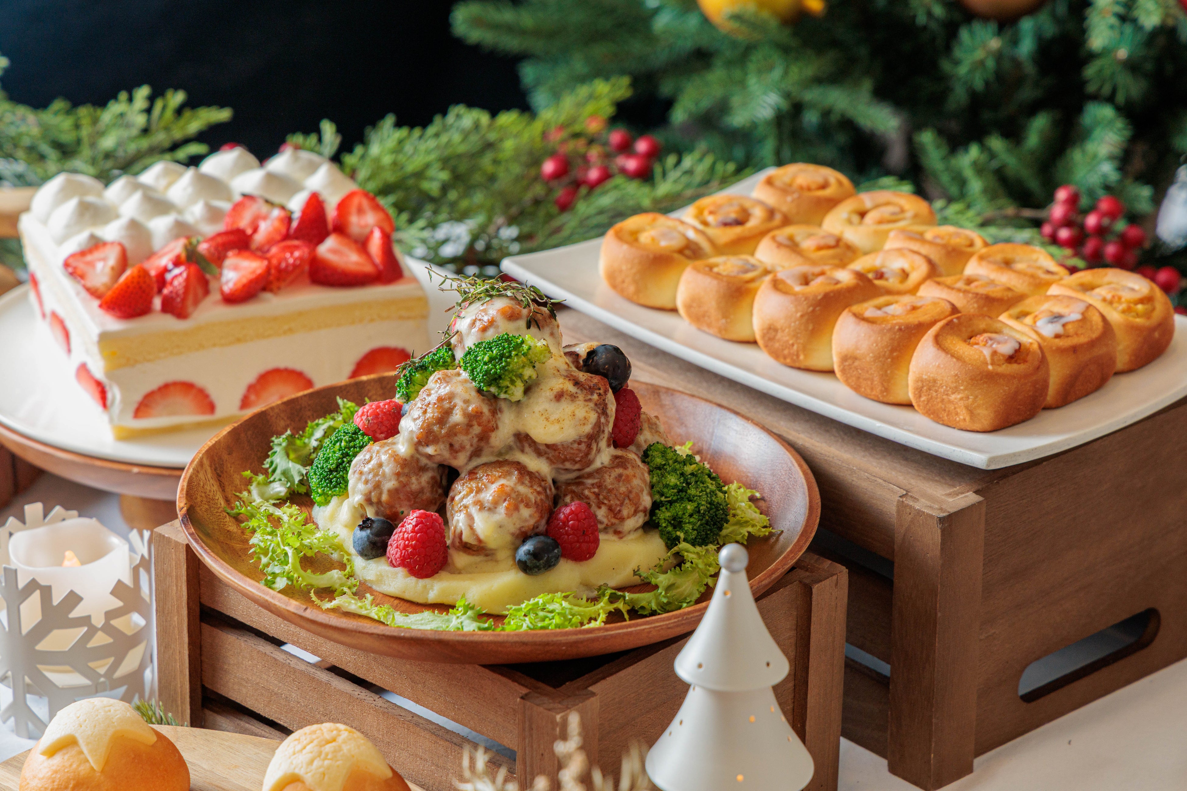 北欧の定番料理であるミートボールや皮をパリパリに焼き上げた豚肉料理「フレスケスタイ」、オープンサンド「スモーブロー」に加え、クリスマスの食卓に欠かせないローストチキンやビーフシチューなどクリスマスや北欧の非日常な世界観を味わえる華やかなメニューをご提供します。ご宿泊のゲストはもちろん、ブッフェのみのご利用もいただけます。