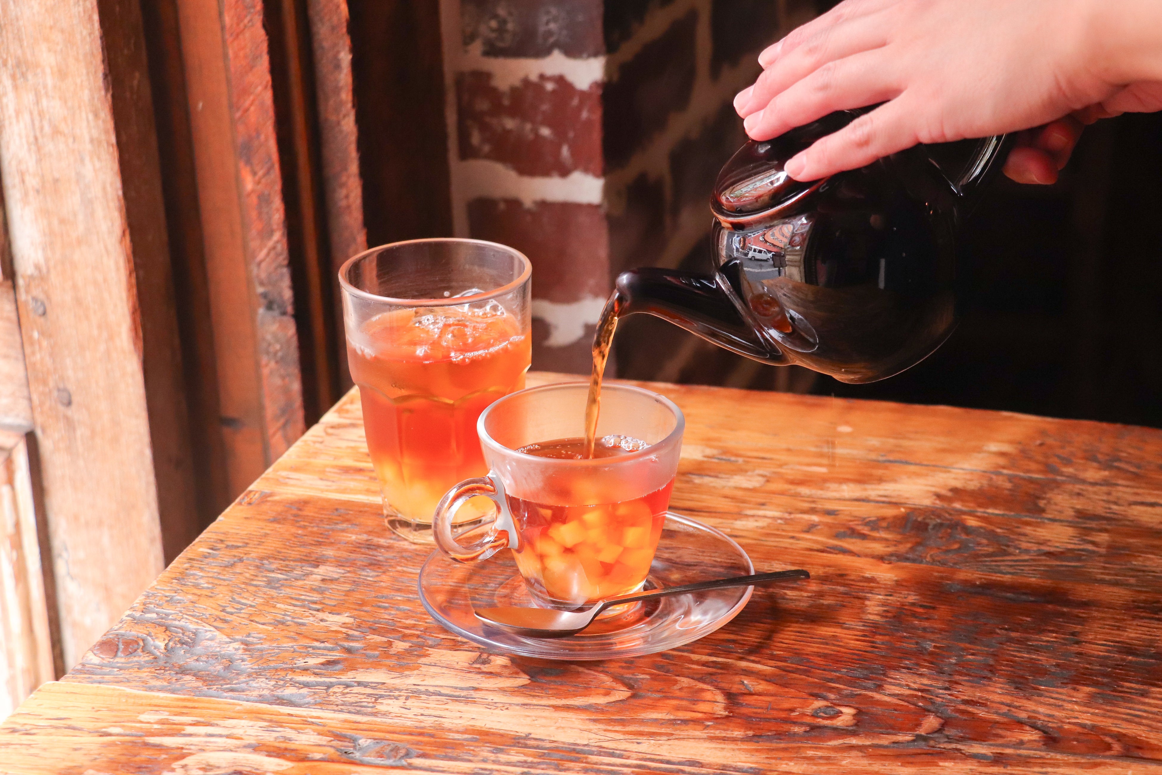 ホットは、紅茶を自家製ゼリーに注いで仕上げるスタイル。ゼリーが少しずつ溶け出し、りんごの風味と金木犀の香りが重なり合う贅沢な一杯です。