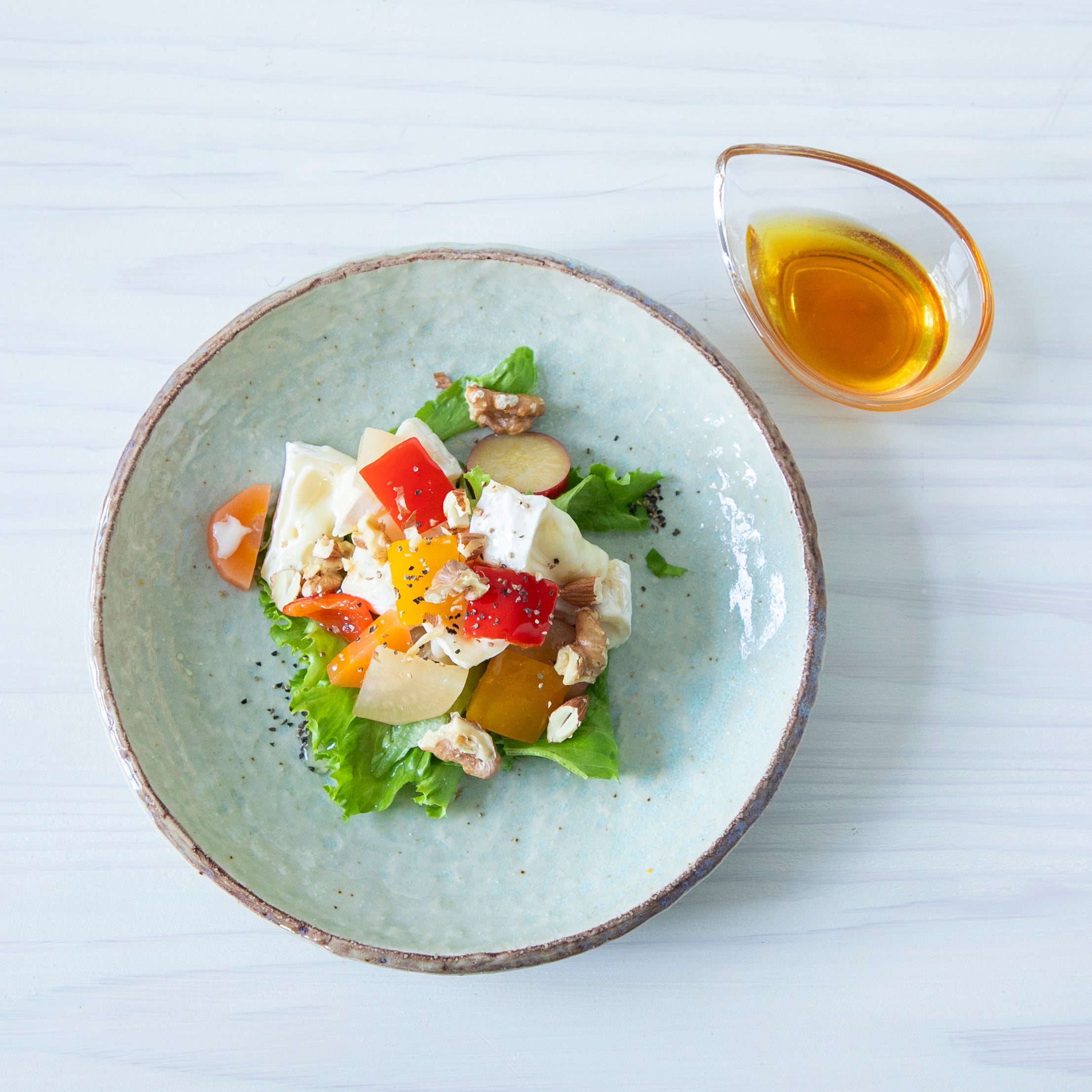 パティシエの繊細な手仕事が光る一品。新鮮な素材を丁寧に選び抜き、美しい色彩と形をそのままに味わい深い一品に仕上げました。和・洋・はちみつ・バニラの4種類のピクルス液を素材に合わせて使い分け、彩り豊かなバリエーションを用意しました。