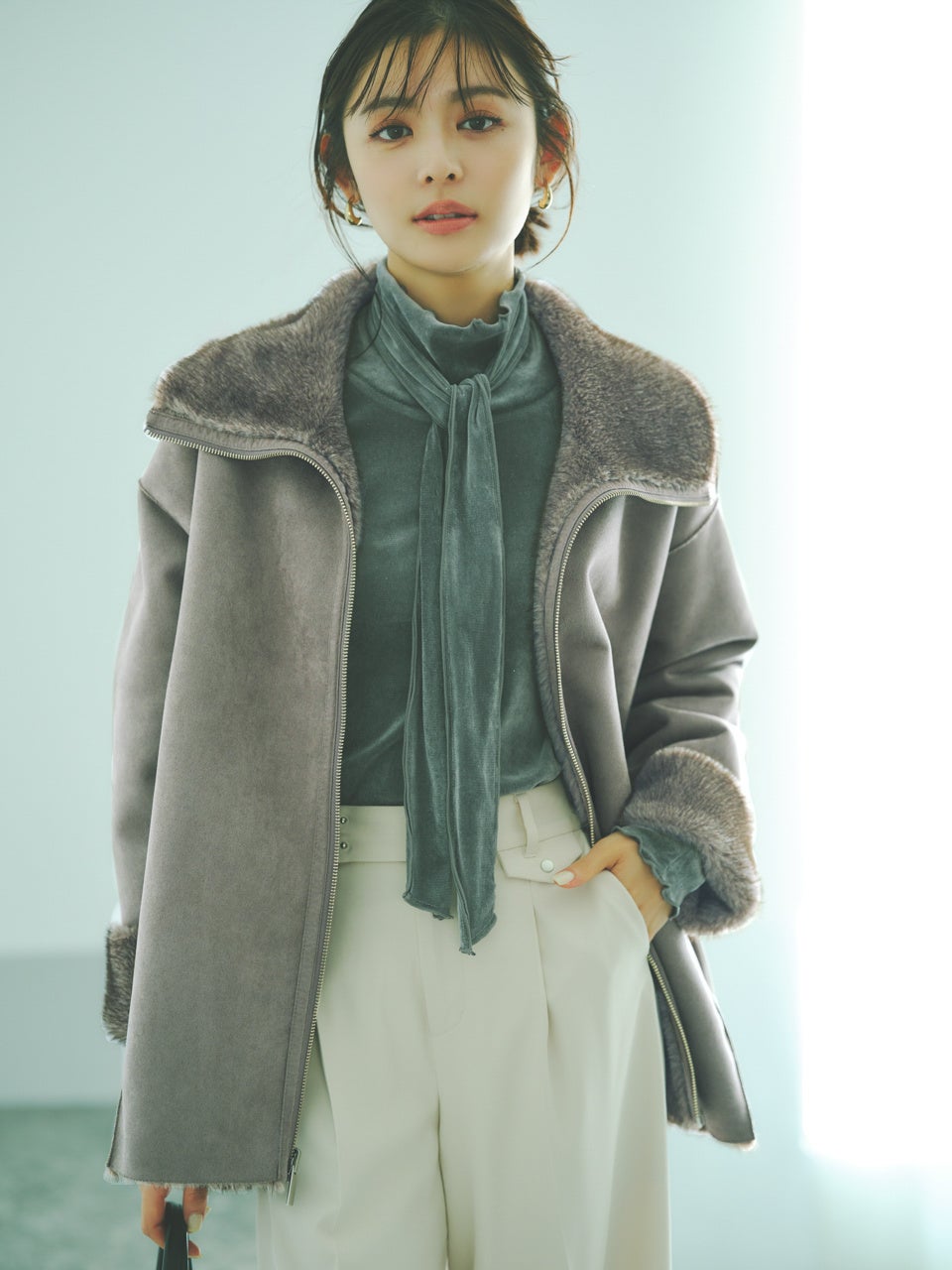 表はスエード調の素材、裏はエコファーを取り入れた贅沢なリバーシブルコート。